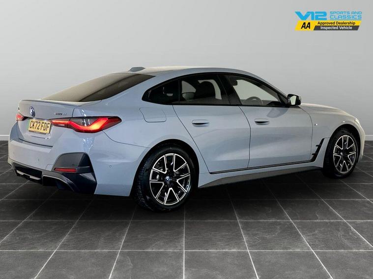 This 2022 BMW i4 40 M Sport is a superb example, having had only one owner since new. As a fully electric vehicle, it offers a sophisticated driving experience with its M Sport trim. This model boasts an impressive 84 kWh battery, providing a maximum range of 351 miles when new, ensuring you can travel further on a single charge. Charging at home with a 7kW charger takes approximately 12 hours and 30 minutes, while rapid public charging can replenish the battery from empty to 80% in as little as 34 minutes. Notable features include the convenient Parking Assistant with a rear camera, automatic air conditioning with climate control, heated front seats for comfort in all weather, and bright LED headlights for enhanced visibility.For peace of mind this vehicle has only had 1 registered owner and has completed a multi point AA inspection. Vehicle specification can be found below. From time to time vehicles have manufacturer recalls notified. Please read our recall policy on our website for further information. Please be advised that the advertised electric vehicle (EV) listings may experience battery degradation over time, resulting in reduced performance and range compared to the original specifications. Factors such as usage patterns, environmental conditions, and charging practices can contribute to this degradation. While we strive to provide accurate information, the actual battery health and performance of each EV may vary. Customers are encouraged to conduct thorough research and consider the potential impact of battery degradation before making a purchase decision. We recommend consulting with a qualified technician or conducting a battery health inspection for further assessment. This vehicle comes with an AVILOO Battery Health Certificate - the global standard for EV battery testing. Full independent analysis confirms excellent battery condition with detailed State of Health assessment, cell-level checks, and accurate range data. Certificate included with purchase for your complete peace of mind and future resale value..