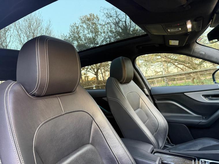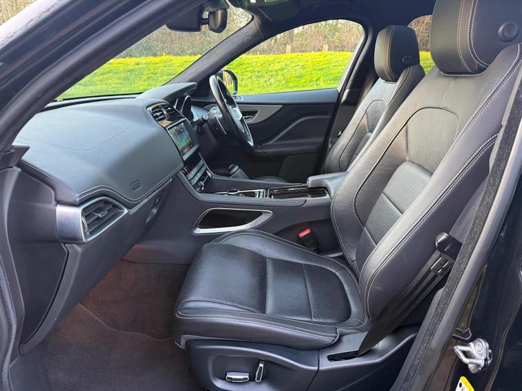 2019''68''REG PRIVATE REG INCLUDED, FINISHED IN SANTORINI BLACK METALLIC, 2 PREVIOUS OWNERS, 6 SERVICES, 1 YEARS MOT, 2 SETS OF KEYS, HIGH SPEC WITH LOTS OF ADDED OPTIONS FRONT FACTORY, PAN ROOF WITH BLIND, WINTER PACK-HEATED FRONT/REAR SEATS + STEERING WHEEL, ELECTRIC MEMORY SEATS, HEATED WINDSCREEN, UPGRADED 10.2''INTERIOR INFORMATION SCREEN, REVERSING CAMERA, LANE ASSIST, SUEDE ROOF LINING, POWER BOOT, ELECTRIC RETRACTABLE TOW BAR, ILLUMINATED KICK PLATES, DYNAMIC DRIVING MODES, AA APPROVED DEALER, 12 MONTHS AA BREAKDOWN COVER, 3 MONTHS WARRANTY AS STANDARD WITH OPTIONS TO EXTEND TO FULL COVER FOR 12/24/36 MONTHS, FCA REGULATED, ALL IN HOUSE FINANCE OPTIONS AVAILABLE THROUGH OUR LARGE PANEL OF LENDERS, ANY PX CONSIDERED, VIEWING BY APPOINTMENT ONLY, This 2019 Jaguar F PACE D180 R-Sport boasts a clear vehicle history, offering you peace of mind. This stylish SUV features a powerful 2.0L diesel engine paired with a Four Wheel Drive system, ensuring confident handling in various conditions. As a Euro 6 compliant vehicle, it meets modern emission standards. The R-Sport trim level enhances its already impressive presence, and with a towing weight of 2400 kg, it is ready for your adventures.Experience exceptional comfort and convenience with this F PACE. The R-Sport model includes a striking Fixed Panoramic Roof, perfect for enjoying the sky above. For practicality, it is equipped with an Electrically Deployable Tow Bar, making towing straightforward. Inside, you will find Heated Front and Rear Seats for all occupants, a Heated Steering Wheel for those chilly mornings, and a Memory Pack for the 10-way adjustable seats, allowing you to easily recall your preferred driving position. The generous boot space provides ample room for luggage or shopping. This Jaguar F PACE accelerates from 0-60mph in a brisk 8.4 seconds, demonstrating its capable performance..