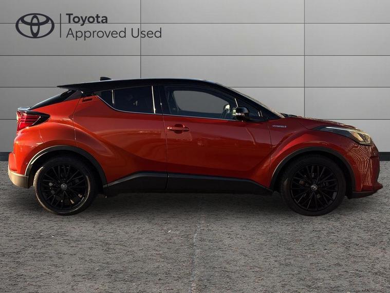 This 2021 Toyota C-HR VVT-h Orange Edition is a Toyota manufacturer approved vehicle, boasting a full service history and has just been serviced by ourselves. Only one owner from new. It features a 2.0L Petrol Hybrid engine, meeting Euro 6 emission standards, and comes with a 12 month warranty for your peace of mind. Inside, you'll find the Toyota Touch 2 Multimedia System with a 7in display, compatible with Android Auto and Apple CarPlay, alongside a premium JBL sound system and Bluetooth connectivity. Comfort is enhanced with a heated steering wheel, and safety is paramount with Toyota Safety Sense, including Blind Spot Assistance.This C-HR Orange Edition offers impressive performance, accelerating from 0-62mph in just 8.2 seconds, a testament to its powerful yet efficient 2.0L hybrid engine. Its fuel economy is a notable highlight, achieving an excellent 53 mpg, which is better than many similar vehicles. Furthermore, its low CO2 emissions and low insurance group make it an economical choice for everyday driving, demonstrating its superiority in running costs compared to other cars in its class..