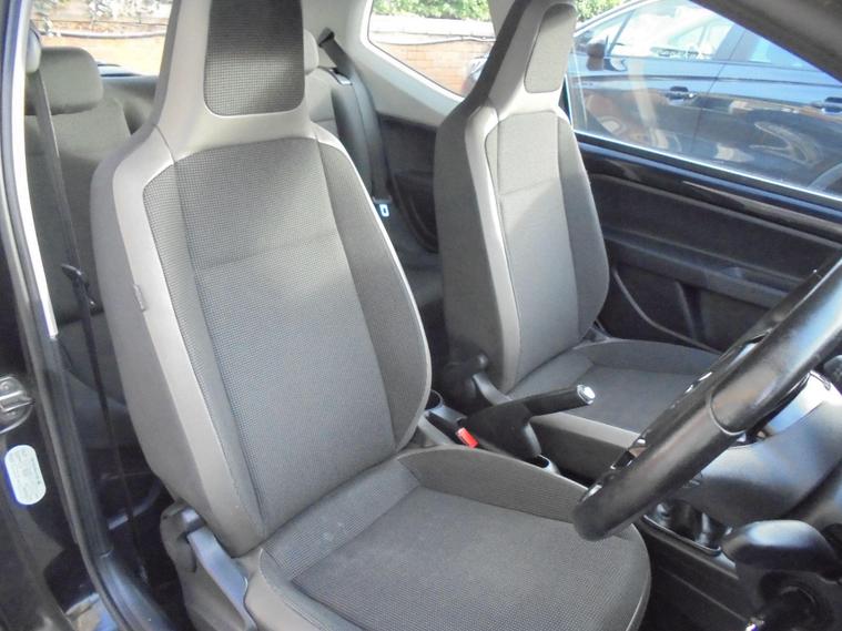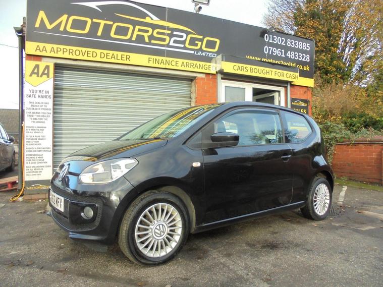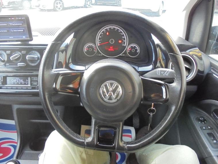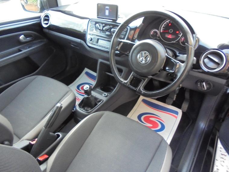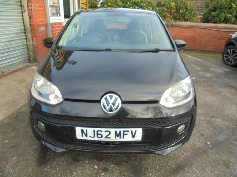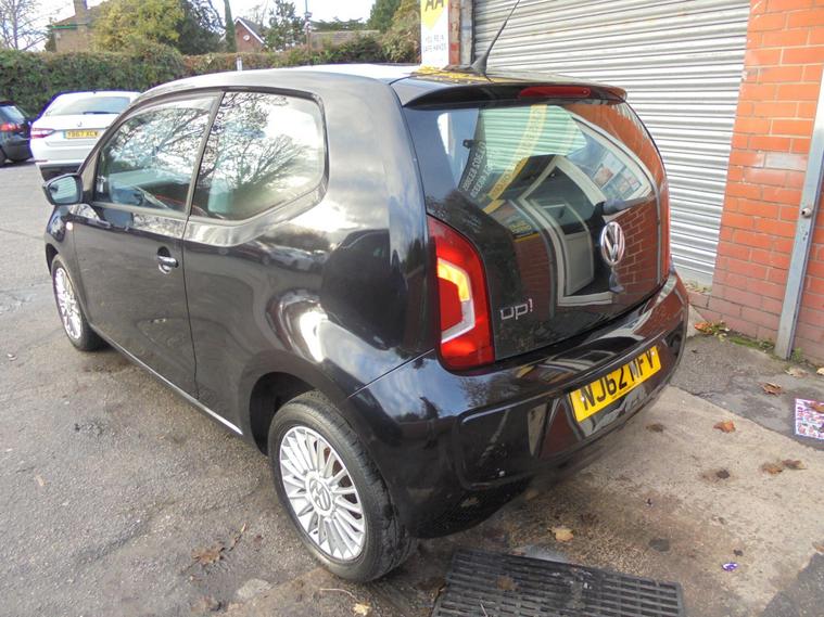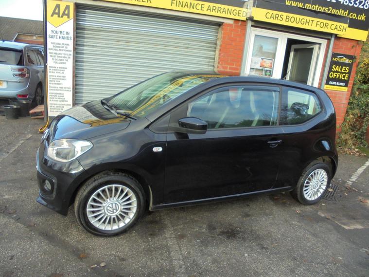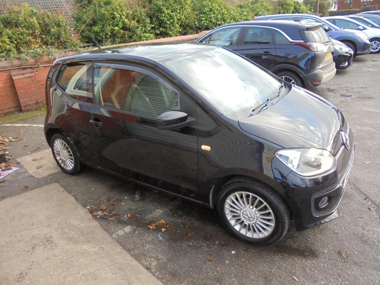 VOLKSWAGEN UP! 1.0 HIGH UP 3 DOOR EURO 5.IDEAL FIRST CAR IN METALLIC BLACK WITH CONTRASTING TWO TONE HALF LEATHER INTERIOR.FANTASTIC SERVICE HISTORY WITH CAM BELT AND WATER PUMP CHANGED AND GREAT SPEC COMES WITH SAT NAV, HEATED SEATS, HALF LEATHER, AIR CON, AUX AND 15 INCH ALLOY AND TWO KEYS.VERY ECONOMICAL FIRST CAR INSURANCE GROUP 2E AND ONLY £20 A YEAR ROAD TAX AND dealer's website WITH MOT UNTIL NOVEMBER 2026 AND FRESH SERVICE.12 MONTHS FREE AA BREAKDOWN COVER AND 18 MONTHS WARRANTY INCLUDED IN PRICE.FULLY VALETED AND READY TO DRIVE AWAY.P/X WELCOME..