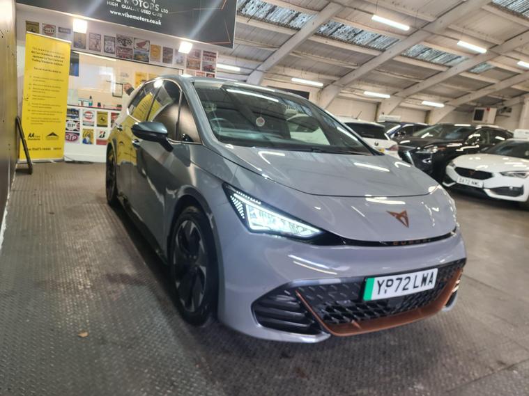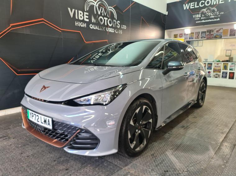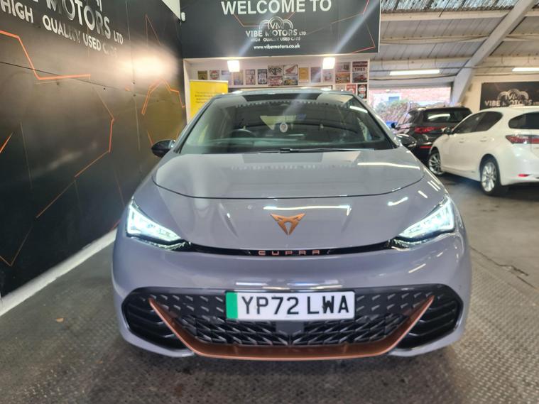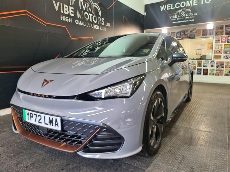 VCAR Category S, ( Previews Damaged was on driver door and wing) Service history, Full MOT history, Low Rate Finance Available, We offer great prices for your Part Exchange, Any Inspection welcome, delivery can be arranged, 3 to 48 months warranty available subject to terms and condition, 12 Months AA Breakdown included, temporary drive away Insurance can be arranged, Gearbox & Battery in Excellent Condition.This 2022 CUPRA Born V2 is a superb example, having been owned by just one careful keeper. As a fully electric vehicle, it offers an impressive battery total capacity of 62 kWh, providing a maximum range of 265 miles when new. Charging is convenient, with a full charge at home using a 7kW charger taking approximately 9 hours and 30 minutes, while rapid public charging can take you from empty to 80% in just 37 minutes. This particular model boasts a MOT valid until November 2026, giving you peace of mind. Inside, you'll find a wealth of desirable features, including heated front seats, a heated leather wrapped multifunction steering wheel, and Climatronic dual zone air conditioning for year round comfort. The Pilot M system includes adaptive cruise control and a rear parking camera, complemented by a keyless go central locking system for effortless access.Experience the exhilarating performance of this CUPRA Born, with its rapid 0-62mph acceleration achieved in a mere 7.3 seconds, a figure that sets it apart from many other electric vehicles. The generous boot space ensures practicality for all your needs, whether it's for daily errands or weekend getaways. With a maximum range of 265 miles from new, this electric hatchback is designed to go the distance, making it an excellent choice for those seeking an efficient and dynamic driving experience..