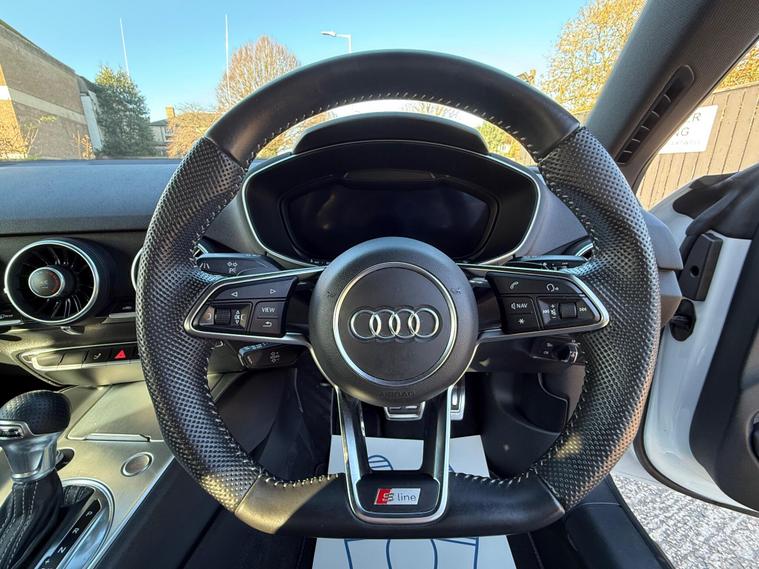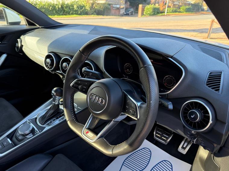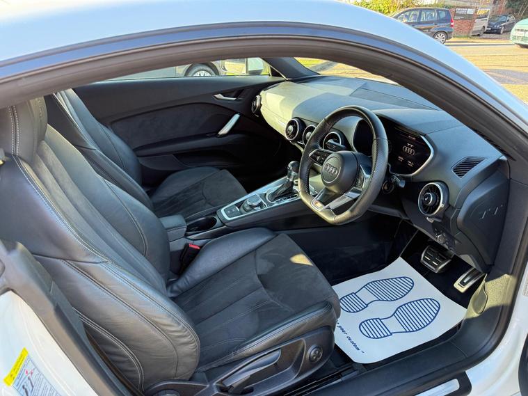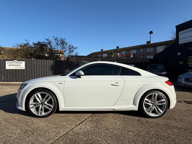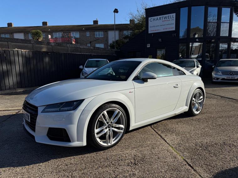 Chartwell's are very pleased to offer this stunning Audi TT TSFI S-Line for sale. This car was purchased new from Audi by a family member so we know the car very well. With no expense spared and its impressive Audi main agent service history this offers a rare opportunity for someone to buy this beautiful car. Serviced every year irrespective of the low use and ultra low mileage. Serviced at 6K, 10K, 19.5K, 22.7K, 24.3K, 29K, 31K, 34K, 36K, 38k, 39k including the all important gearbox oil change. The last service was completed on 02/07/2025 at 39, 066 miles. A new MOT which runs until 11/11/2026 passing with 0 advisories. All 4 alloy wheels are un marked. Matching HanKook tyres all-round. This truly loved car is easily the best one on the market and is in beautiful condition throughout. Finished in a lovely metallic white and in the S-Line Top spec it's sure to go fast. The extensive high spec includes Metallic Glacier white paint, 19'' alloys, Privacy glass, Rear parking assist, Auto lights, LED running lights, Suede sport seats, Height adjustable seats, Heated seats, Interior light pack, Advanced Key, Hold assist, Tech Pack with Audi Connect, S-Line sport suspension, Front centre armrest, Air-conditioning, Steering wheel controls, Cruise control, Electric windows, Electric folding mirrors, Factory Satellite Navigation, Audi surround sound, Bluetooth connectivity, DAB Radio -CD Player - USB - AUX and much much more. We have the full owners manual, book pack and 2 remote keys. The car is HPI clear with the print out available. We are an approved AA dealer offering a free 12 months AA breakdown cover with every car. We offer a 3-month/ 3000 miles warranty as standard unless explicitly sold as a trade sale. Extended warranties through WarrantyWise are optional, please ask for details.All Part Exchanges are considered, please talk to us before you sell your vehicle elsewhere. For more information please call us on our landline 01787902782 Monday - Saturday or after-hours Philip on 01787902782..