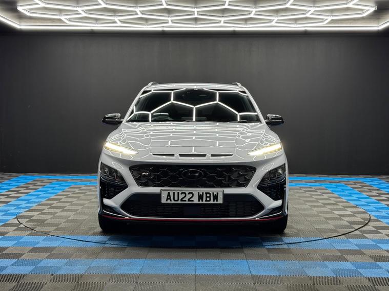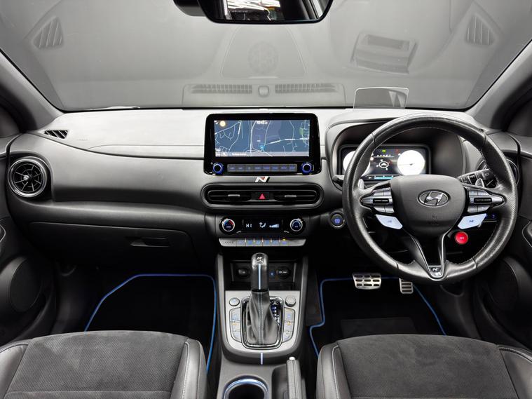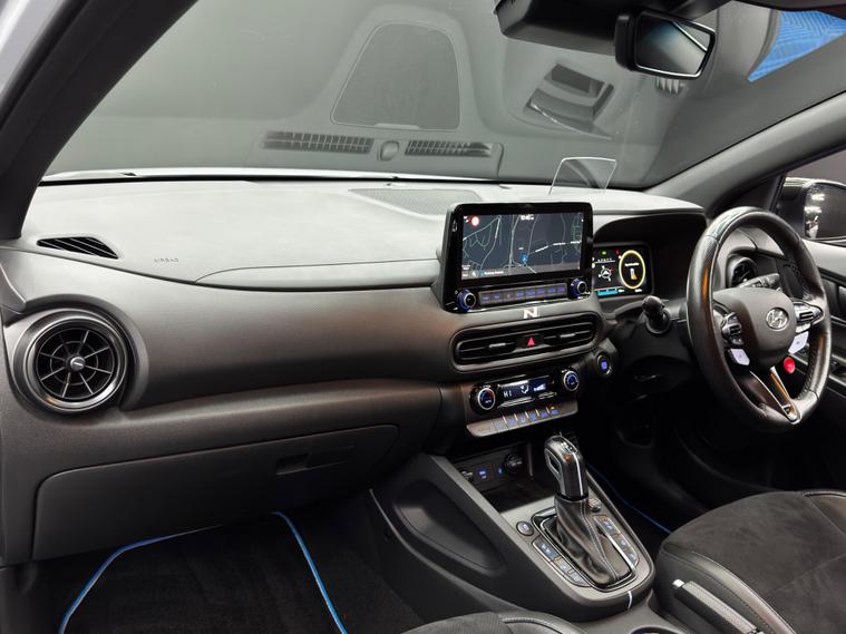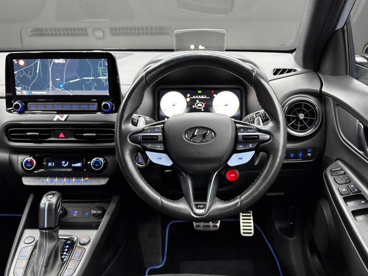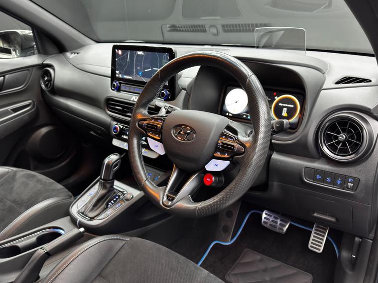 Here at Motor Gurus we are delighted to offer a Hyundai KONA 2.0 T-GDi N DCT. This vehicle is in immaculate condition inside and out. This specific vehicle is finished in a GLOSS BLUE and is contrasted by a BLACK LEATHER/SUEDE interior. This vehicle comes included with: FRONT & REAR PARKING SENSORS, REAR PARKING CAMERA, PRIVACY GLASS, HEADS UP DISPLAY, PERFORATED LEATHER GRIPPED STEERING WHEEL, FRONT ELECTRIC/HEATED/VENTED SEATS, REAR HEATED SEATS, HEATED STEERING WHEEL, KRELL SOUND SYSTEM, ADAPTIVE CRUISE CONTROL, DRIVING MODES, AUTOMATIC HEADLIGHTS, DIGITAL COCKPIT, TWIN CUPHOLDERS, WIRELESS PHONE CHARGING, CLIMATE CONTROL, SAT NAVIGATION, DAB RADIO, BLUETOOTH AUDIO, TELEPHONE CONNECTIVITY, APPLE CARPLAY, BLIND SPOT MONITORING, KEYLESS ENTRY/EXIT AND MUCH MORE! Our Hyundai KONA 2.0 T-GDi N DCT has come to us with FULL SERVICE HISTORY and 2 KEYS! We will also provide this vehicle with a 12 MONTH MOT as well as a FRESH OIL SERVICE before it leaves our premises (OTR)..
