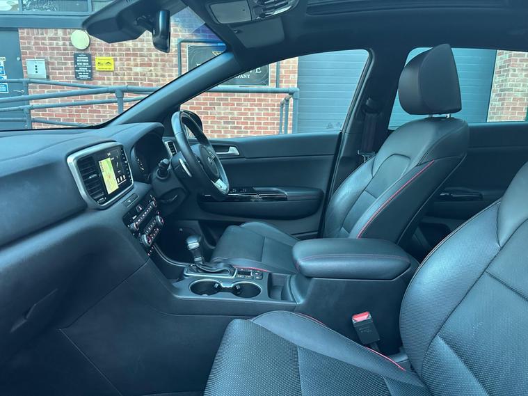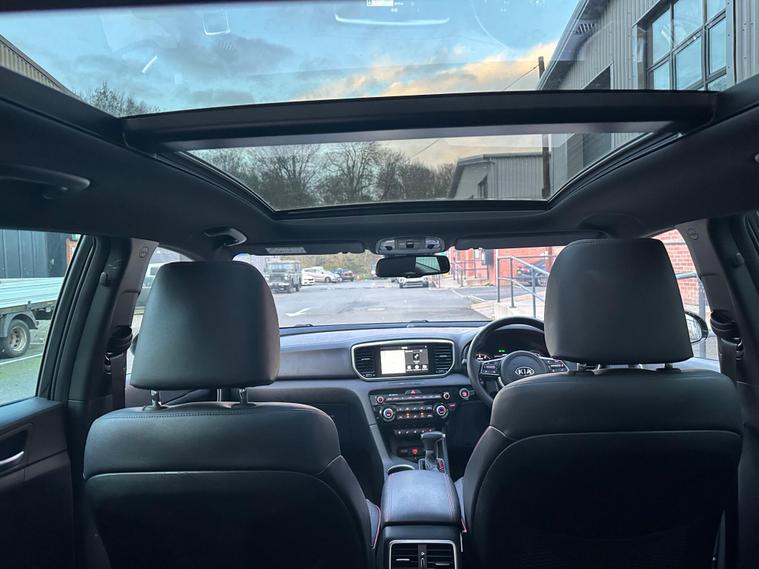 This 2019 Kia Sportage T-GDi GT-Line S boasts a clear vehicle history, offering you peace of mind. This stylish SUV is equipped with a responsive 1.6 litre petrol engine and a capable four wheel drive system, meeting the Euro 6 emission standards. Inside, you'll find a wealth of technology designed for convenience, including Apple CarPlay and Android Auto for seamless smartphone integration, and a panoramic sunroof with an electric one touch opening for an airy cabin experience. The GT-Line S trim also features a Smart Park Assist System, which aids with both parallel and perpendicular parking, complemented by front and rear parking sensors.Experience impressive performance with a 0-60mph acceleration time of just 8.8 seconds, demonstrating its dynamic capability. This Sportage also stands out with its generous boot space, making it ideal for families and adventurers alike. Furthermore, its inclusion in a low insurance group suggests that running costs are kept competitive, offering excellent value compared to similar vehicles. A heated steering wheel adds an extra touch of comfort during colder journeys..