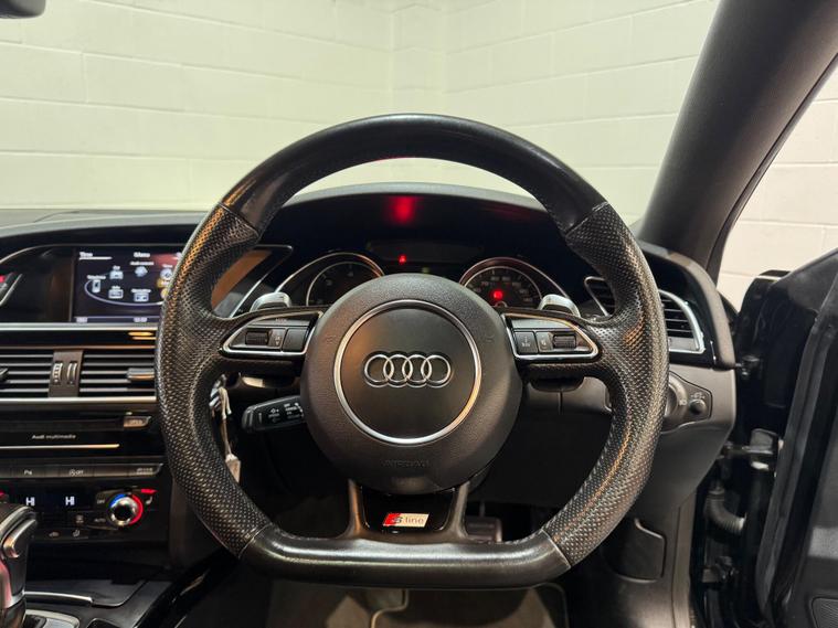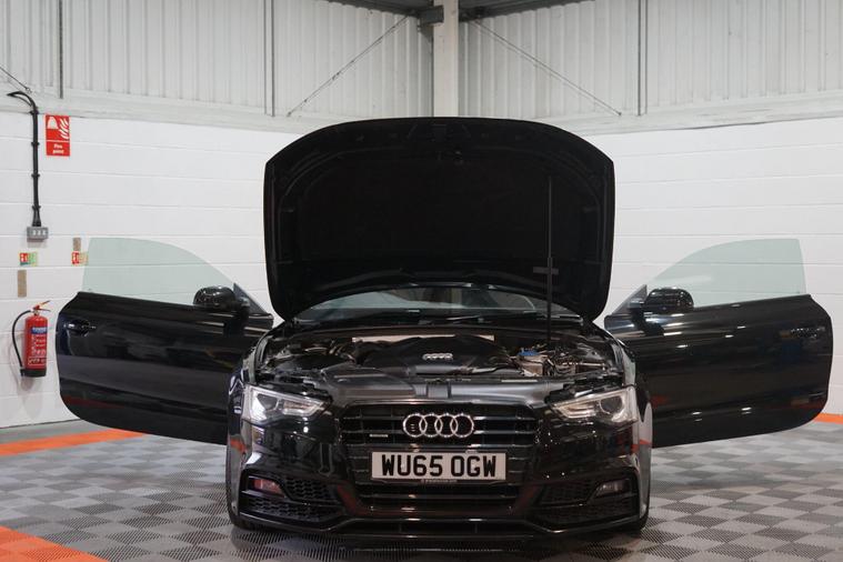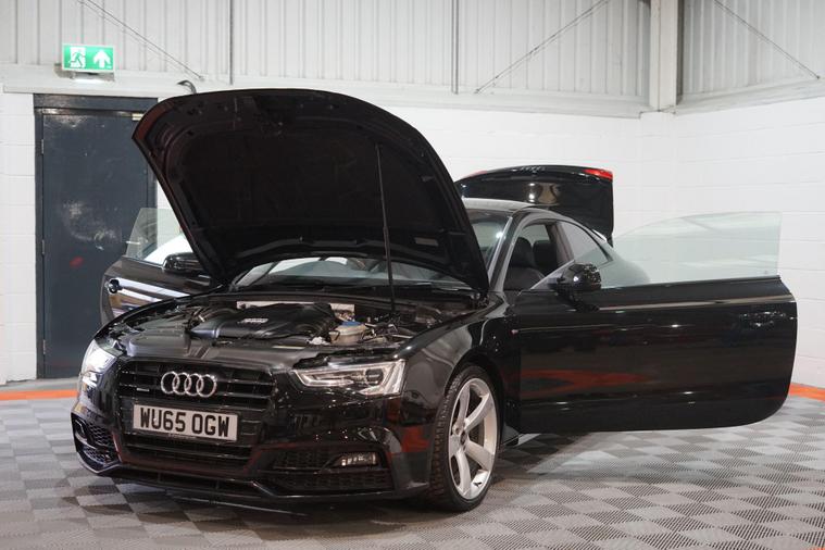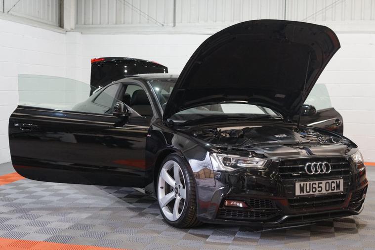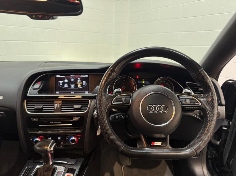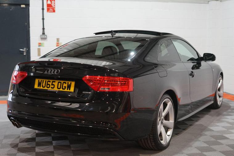We are delighted to present this powerful and highly sought-after Audi A5 3.0 TDI V6 Black Edition Plus S Tronic quattro, finished in stunning Mythos Black Metallic and equipped with an impressive list of premium factory options.Under the bonnet sits the acclaimed 3.0-litre V6 TDI engine paired with the smooth and responsive S Tronic automatic gearbox, delivering strong performance and refined efficiency. With quattro all-wheel drive, this A5 offers exceptional grip, stability, and confidence in all weather conditions.The Mythos Black Metallic paint perfectly complements the Black Edition Plus styling, enhanced further by factory privacy glass for a sleek, stealthy appearance. Inside, the cabin is both sporty and luxurious, featuring Black Headlining and an upgraded Interior Lighting Package that adds ambience to every journey. The Storage Package offers additional practicality, while the electric lumbar support and heated front seats ensure comfort in all conditions.Additional convenience features include Cruise Control, Audi Hill-Hold Assist, and the clean, badge-free rear thanks to the deletion of model and engine designation. This example also benefits from an Electric Sunroof, bringing light and openness to the interior, as well as a Reverse Camera for effortless manoeuvring.A rare and beautifully specified example, this Audi A5 Black Edition Plus combines performance, luxury, and style in an exceptional coupe package..