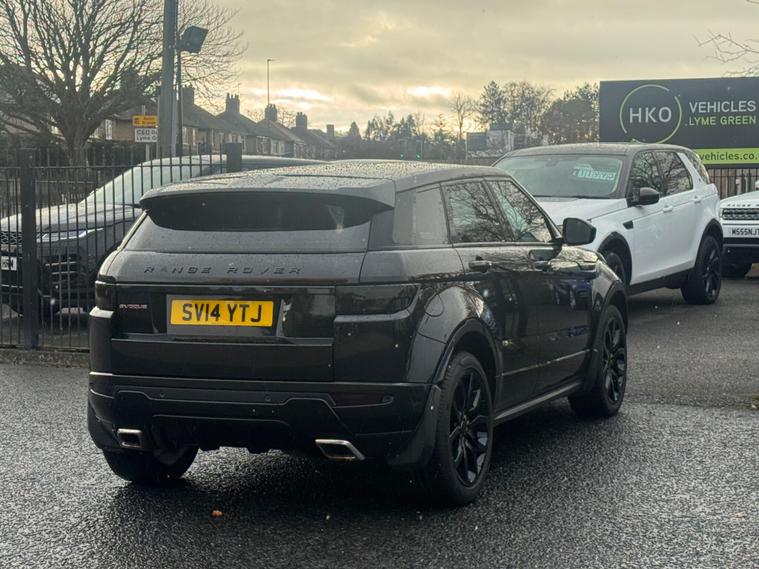 Welcome to HKO Vehicles Lyme Green!We’re delighted to present this stunning Range Rover Evoque 2.2 SD4 Dynamic Auto 4WD Black Edition, a premium SUV offering exceptional style, capability, and luxury. As an AA Approved Dealer, this vehicle comes with 12 months free AA Breakdown Cover, full service history, a long MOT, 3 months warranty, and finance options available. Finished in striking Black and equipped with standout features including full leather interior, panoramic roof, and automatic transmission, this 2014 (14 plate) Evoque has covered 115, 000 miles and represents outstanding value in the luxury SUV market.Manufacturer Specification Highlights • Engine: 2.2 SD4 Diesel (190ps) • Transmission: Automatic • Drive: 4WD • Emissions Standard: Euro 5 (s/s) • Body Style: 5-Door SUV • Colour: Black • Registration: SV14 YTJ • Mileage: 115, 000 milesKey Features • Panoramic Glass Roof – bright and airy cabin • Full Leather Interior – luxury and comfort throughout • Black Edition Styling Pack • Dynamic Body Styling • Touchscreen Navigation System • Bluetooth Hands-Free & Audio Streaming • Meridian Sound System (model dependent) • Heated Front Seats • Cruise Control • Dual-Zone Climate Control • Front & Rear Parking Sensors • Reverse Camera (model dependent) • Electric Power Tailgate • Keyless Entry & Start • Alloy Wheels • Automatic Headlights & Wipers • 4WD Terrain Response SystemThis Range Rover Evoque Dynamic Black Edition delivers a perfect blend of luxury, performance, and style—ideal for families, commuters, and anyone seeking a premium driving experience with excellent road presence.Contact HKO Vehicles Lyme Green today to arrange a viewing or test drive—this high-spec Evoque won’t stay around for long!.