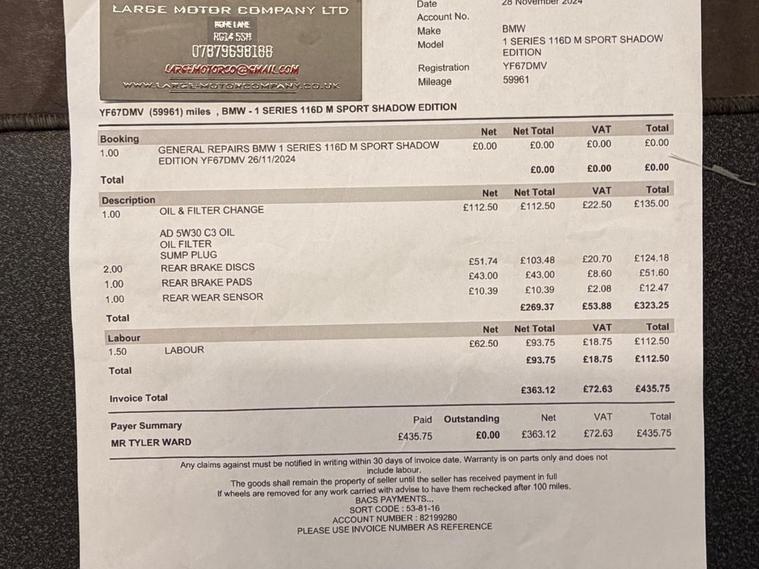 This 2018 BMW 1 Series 116d M Sport Shadow Edition presents a compelling proposition with its remarkably low mileage for its age, having covered just 65, 911 miles. This Euro 6 compliant 1.5L diesel model, presented in the desirable M Sport Shadow Edition trim, benefits from a recent service at 59, 961 miles and will come with a full 12 months MOT for your peace of mind. A 3 month warranty is also included.The M Sport Shadow Edition boasts a range of notable features designed to enhance your driving experience. Inside, you'll find the Interior Comfort Package, complete with climate control, and convenient electric windows with an anti trap facility and comfort closing function. Parking is made effortless with Park Distance Control for both the front and rear, supported by front and rear parking sensors. The integrated grab handles in the roof linings add a touch of practicality, while the crisp LED headlights ensure excellent visibility. Furthermore, this BMW 1 Series offers generous boot space, making it a practical choice for everyday use and longer journeys..