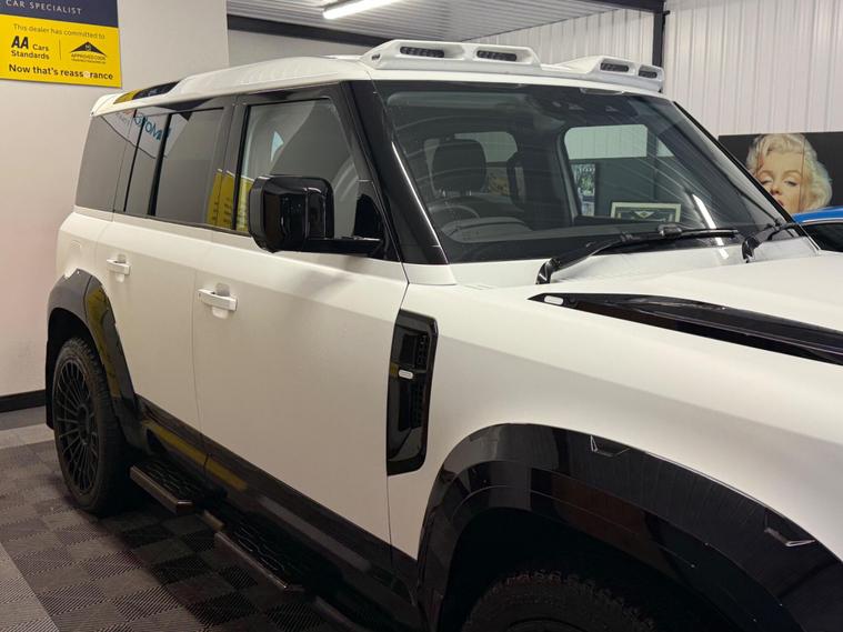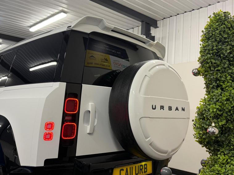 VAT qualifying 2022 Land Rover Defender 110 3.0 D250 MHEV Hard Top Auto, 62, 877 miles. Full service history on the Land Rover system with a mix of main dealer and specialist entries. We will complete a fresh service at an independent garage and a new MOT as part of our preparation. Two former keepers and previously Urban-owned, benefiting from a full Urban exterior conversion, Urban interior upgrades, bespoke steering wheel and Urban leather rear seat conversion. Wrapped in matt white with white paintwork beneath, all carried out by Urban. These genuine Urban enhancements not only elevate the look and feel but also help protect long-term resale value due to their desirability and build quality. Supplied with two keys.A 3-month comprehensive warranty is included, with extensions available for up to two years. Part exchange is welcome, and our Buying Department can offer prompt valuations. Nationwide delivery is available on request, and you can reserve this vehicle today with a £250 fully refundable deposit.We have over 150 vehicles in stock across our two sites. Established in 2021, we pride ourselves on excellent reviews and customer care. All retail vehicles are fully health-checked and prepared to a high standard. As an AA Approved Dealer with Trading Standards endorsement, every car includes 12 months free AA breakdown cover. We are authorised and regulated by the FCA under FRN: 1014981..