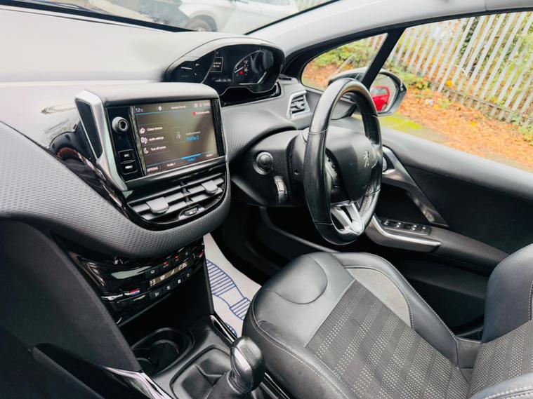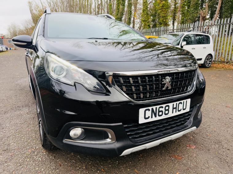 BLACK, SERVICE HISTORY(5-STAMPS), FINANCE AVAILABLE, NAVIGATION SYSTEM, PARKING CAMERA, PANORAMIC ROOF, SPARE KEY, HALF LEATHER SEATS, ELECTRIC FOLDING WINBG MIRRORS, ONLY TWO FORMER KEEPER FROM NEW, SPARE WHEEL AND JACK, PRIVACY GLASS, START/STOP, CRUISE CONTROL, ULEZ COMPLIANT SUPERB DRIVE, VERY ECONOMICAL, ALLOY WHEELS, CLIMATE CONTROL, VERY WELL LOOKED AFTER, VERY CLEAN IN AND OUT.This 2018 Peugeot 2008 Allure Premium is a well presented example of this popular compact SUV. Powered by an efficient 1.2 litre petrol engine, this Euro 6 compliant model offers a compelling blend of style and practicality. Inside, you'll find a 7 inch multifunction colour touchscreen that puts control at your fingertips, complete with steering wheel mounted controls. Stay connected and entertained with Mirror Screen technology, offering seamless integration for Apple CarPlay, Android Auto, and MirrorLink. For added convenience, rear parking aid with rear sensors makes manoeuvring simple, while the striking Cielo panoramic glass roof floods the cabin with light, creating an airy and pleasant atmosphere. Bluetooth connectivity is also included for hands free calls and audio streaming.The Peugeot 2008 Allure Premium stands out with its impressive fuel economy, achieving an excellent 44 miles per gallon, which indicates it is more economical than many similar vehicles. Furthermore, its low CO2 emissions highlight its environmental consideration. This model also benefits from a low insurance group, suggesting that running costs are kept to a minimum, making it an attractive choice for a wide range of drivers..