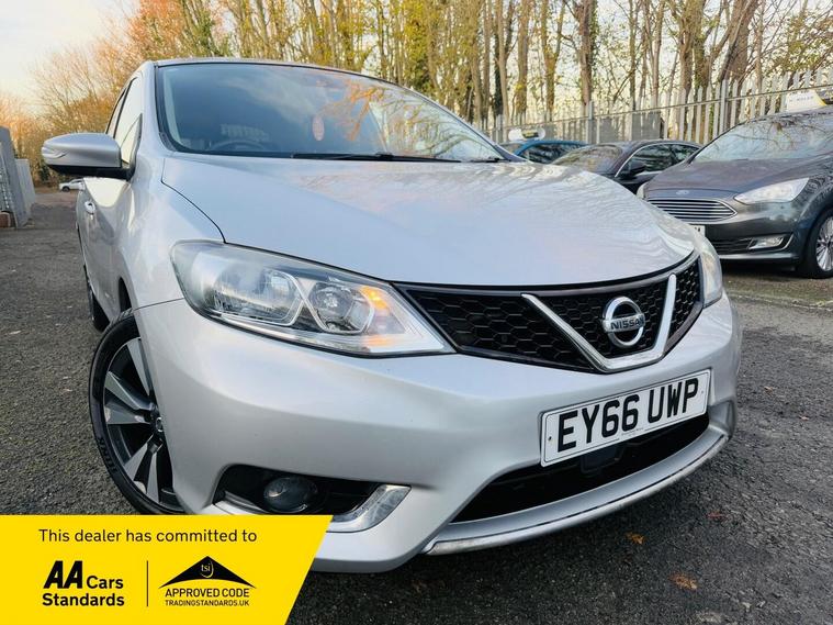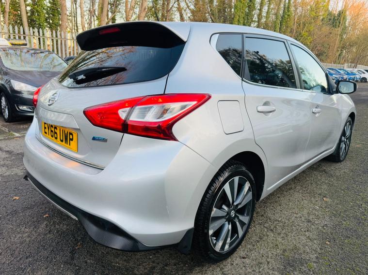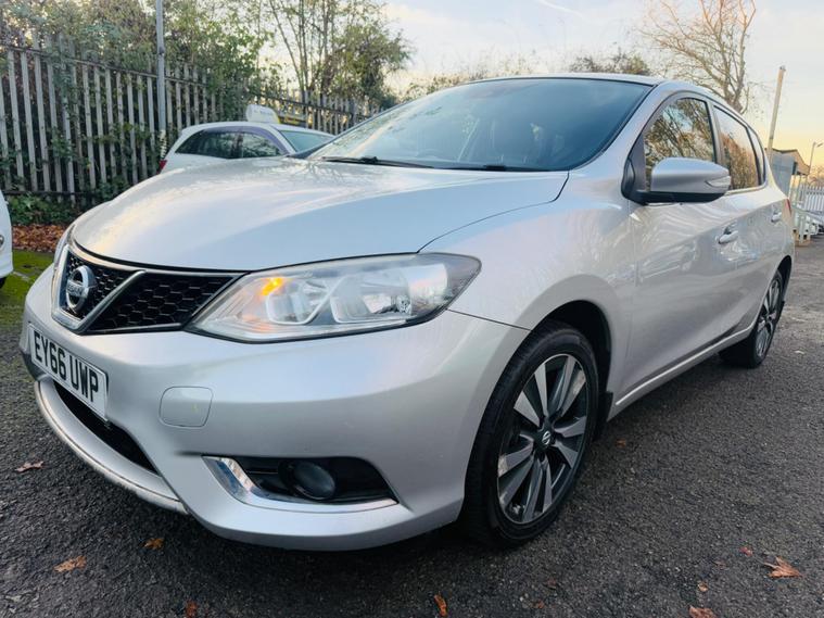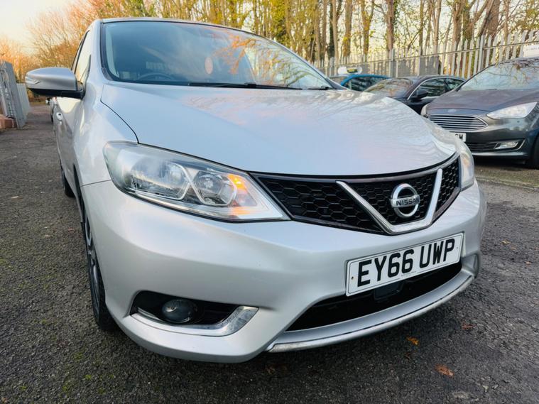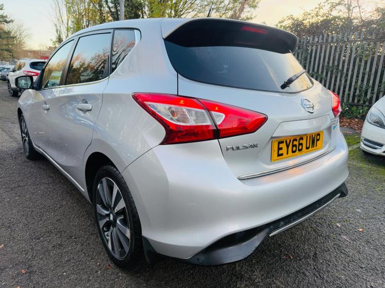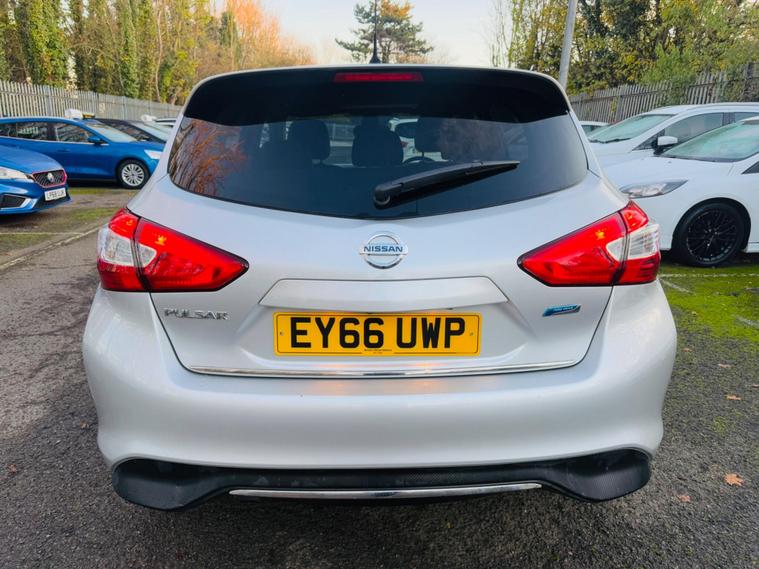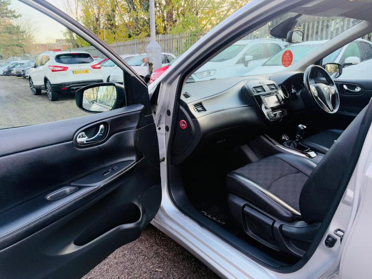 SILVER, FULL SERVICE HISTORY(9-STAMPS), FINANCE AVAILABLE, NAVIGATION SYSTEM, PARKING CAMERA, HALF LEATHER SEATS, SPARE KEY, ONLY TWENTY POUND ROAD TAX PER YEAR, PRIVACY GLASS, START/STOP, CRUISE CONTROL, ULEZ COMPLIANT SUPERB DRIVE, VERY ECONOMICAL, ALLOY WHEELS, CLIMATE CONTROL, VERY WELL LOOKED AFTER, VERY CLEAN IN AND OUTThis 2016 Nissan Pulsar dCi N-Connecta is a remarkable find with exceptionally low mileage for its age, having covered just 65, 482 miles. This Euro 6 compliant 1.5 litre diesel model offers a refined driving experience, enhanced by features such as dual zone climate control air conditioning and Bluetooth telephone integration for seamless connectivity. The N-Connecta trim also includes automatic headlights that activate at dusk, an intelligent key with a push button start for keyless entry, and a tech pack featuring rear parking assistance with a camera, making every journey more convenient and enjoyable.You will appreciate the outstanding fuel economy of this Pulsar, achieving an impressive 79 miles per gallon, which is significantly better than many other vehicles in its class. Furthermore, its low CO2 emissions and low insurance group highlight its cost effectiveness for everyday use. The generous boot space provides ample room for luggage or shopping, making this Nissan Pulsar a practical and economical choice for a wide range of drivers..