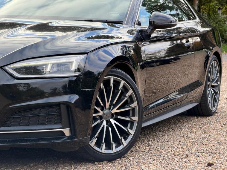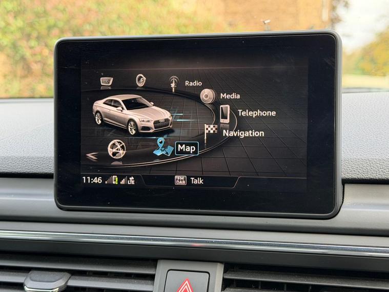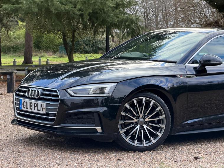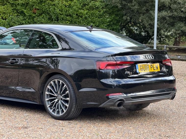 This 2018 Audi A5 TFSI S line is a superb example, having been owned by just one careful keeper from new. It boasts a powerful yet efficient 2.0 litre petrol engine, meeting Euro 6 emissions standards. The S line trim enhances its sporty appeal, and you'll appreciate the convenience of a rear view camera with parking assistance, alongside striking 19 inch 10 spoke alloy wheels. Driving is made safer and more comfortable with Matrix LED headlights, LED rear lights featuring dynamic indicators, and Audi Side Assist which includes blind spot assistance. Headlight washers are also included for added practicality.This Audi A5 offers excellent running costs, highlighted by an impressive fuel economy of 50 miles per gallon, placing it in a low insurance group. Its generous boot space makes it a practical choice for everyday use and longer journeys. Furthermore, its low CO2 emissions demonstrate a commitment to efficiency, making it a more environmentally conscious option compared to many similar vehicles..
