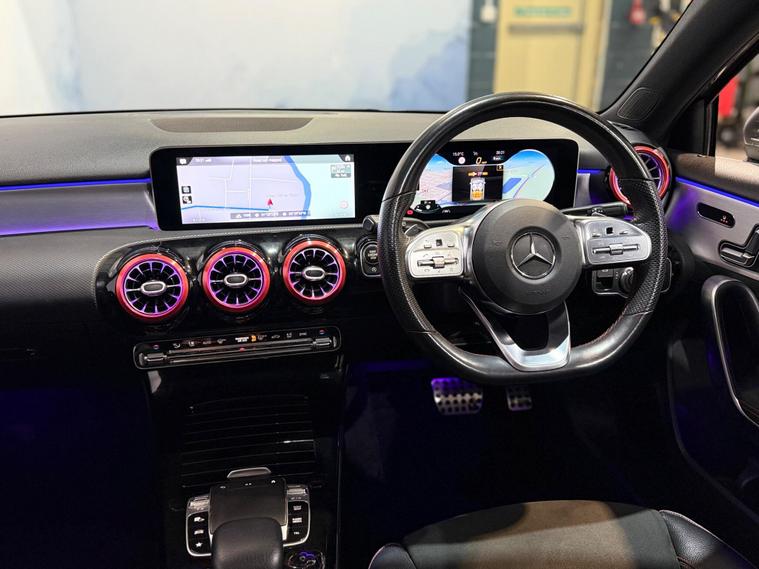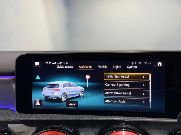 This 2019 Mercedes Benz A Class A220 AMG Line (Premium Plus) boasts exceptionally low mileage for its age, having covered just 26, 500 miles. Powered by a 2.0 litre petrol engine and meeting Euro 6 emissions standards, this model offers a compelling blend of performance and efficiency. It comes equipped with the desirable Premium Plus Package, featuring LED headlights, keyless entry, an opening panoramic sunroof, and heated front seats with memory function. Parking is made simpler with front and rear parking sensors, complemented by a 180 degree reversing camera with parking guidelines.The Advanced Connectivity Package ensures you stay connected on the go, with Android Auto, Apple CarPlay, and wireless phone charging readily available. Navigation is seamless thanks to the Advanced Navigation Package, and the dual Bluetooth interface with two USB Type C ports offers convenient connectivity options. This A Class also impresses with its large boot space, providing ample room for your luggage or shopping. Its acceleration is noteworthy, achieving 0 to 62 miles per hour in just 6.9 seconds, demonstrating a spirited performance that sets it apart from many similar vehicles..