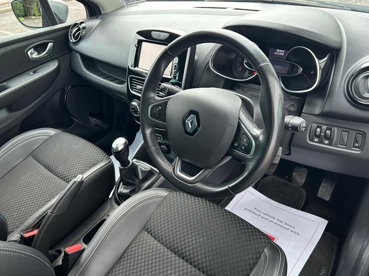 We are delighted to offer for sale this 2018 (18) Renault Clio 0.9 TCe GTLine Euro 6 in gleaming Black. In excellent condition throughout, this affordable 5 door hatchback is very economical (up to 61 mpg on a combined run). It is spacious and capable of comfortably seating 5 passengers and also has a good sized boot. With the below average mileage of 53, 531 there is still plenty of life left in this great car and it is also ULEZ compliant. HISTORY: The vehicle has had only 2 careful owners (last owner for 6 years), comes with 2 keys and has a full service history (3 main dealer+ 3 independent stamps) as well as a clean vehicle history check. The last service was a major service (including spark plugs and front brake discs and pads)at 50, 007 miles. It will come with a full 12 months MOT. SPEC: This 2018 Renault Clio has an excellent spec. It features a 0.9L petrol engine and meets Euro 6 emission standards. Entry is keyless (key card) with a push button start. The half leather seats, leather trimmed multifunction steering wheel and gear lever add a touch of quality while MediaNav multimedia integrates the multifunction colour touchscreen with mobile devices for Bluetooth connectivity/handsfree calls. Further specification includes LED headlights, silver capped door mirrors, climate control, cruise control/speed limiter, rear parking sensors, Satnav, electric windows and electric folding mirrors. Isofix points allow you to fit child seats and a there is a space saver spare wheel and toolkit for your convenience. Outside the colour coded Peugeot diamond cut 17 inch alloys are in excellent condition and compliment the Black paintwork perfectly.OUR PREP: For your peace of mind, this vehicle has gone through our strict preparation process. It has been professionally valeted and MOT'd as part of our expert vehicle prep; it is HPI clear and comes with a 3 month/3000 mile warranty included in the advertised price. Extended warranties are also available. Part exchange is welcome.VIEWING IS STRICTLY BY APPOINTMENT ONLY SO PLEASE CALL TO ARRANGE YOUR VIEWING..