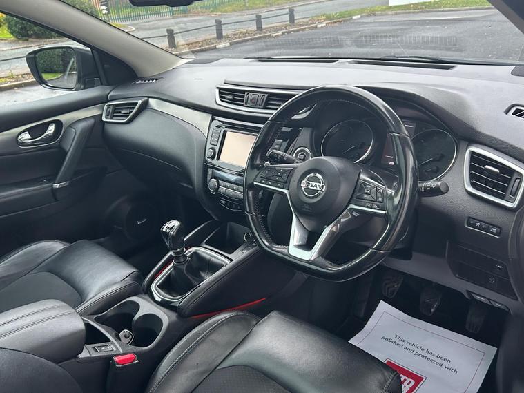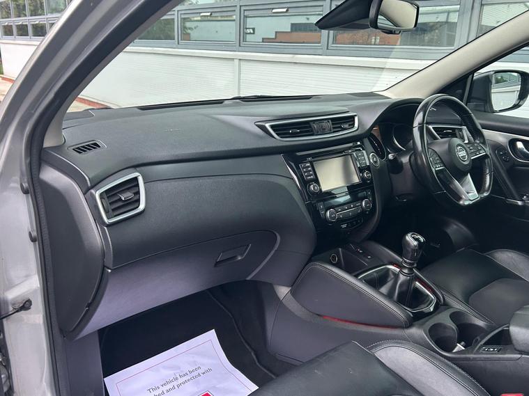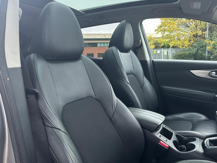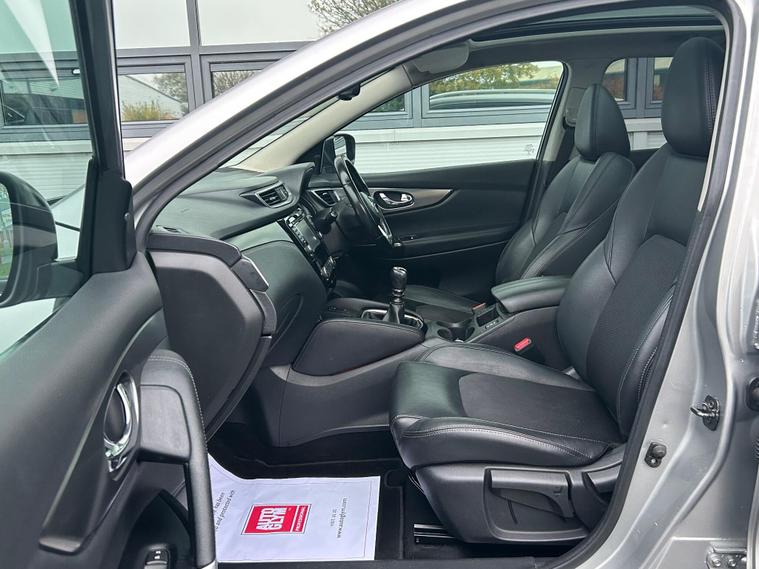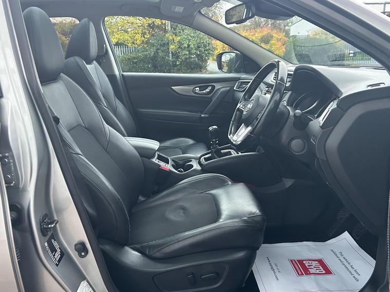 We are delighted to offer for sale this 2018 (18) Nissan Qashqai Tekna DCi Euro 6 in Metallic Silver. In very good condition throughout, this affordable 5 door MPV is very economical (upto 74mpg). It is spacious, capable of comfortably seating 5 passengers and also has a good sized boot. With below average mileage there is plenty of life left in this great car and it is ULEZ compliant. HISTORY: This car has had 2 careful previous owners, comes with 2 keys and has a full service history (10 main dealer stamps). It was most recently serviced on 16/10/225 at 70, 673 miles. It has covered just 70, 758 miles and it will come with a 12 month MOT.SPEC: This Nissan Qashqai has an excellent spec. Enjoy the ease of the full smart entry and push button start system which includes keyless entry. Stay connected via Bluetooth for handsfree calls , along with upgraded Bose audio system and USB/aux inputs for your entertainment. The air conditioning with climate control will keep you cool and both driver and passenger seats are heated for the winter months ahead. The Panoramic glass roof, leather seats, leather trimmed multifunction steering wheel and gear lever, front and rear armrests all add a touch of quality to the interior. Driving is made easier with the 6 speed gearbox, cruise control/speed limiter, Lane assist, Satnav, front/rear parking sensors, auto stop/start, colour reverse camera (plus 360 degree view) and blind-spot detection for enhanced safety. This car also has all electric windows; electric/folding door mirrors; traction control; remote central locking with alarm and ISOFIX points for child seats. Outside the Metallic Silver paintwork is complemented by 19 inch diamond cut alloy wheels and Privacy glass.OUR PREP: For your peace of mind, this vehicle has gone through our strict preparation process including an independent vehicle inspection, professional valet, and service. The vehicle is HPI clear and comes with a 3 month/3000 mile warranty included in the advertised price. Extended warranties are also available. Part exchange welcome..