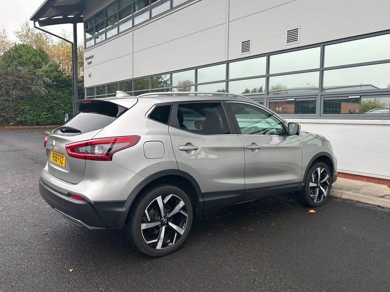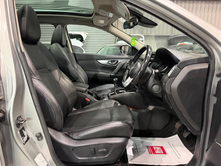We are delighted to offer for sale this 2018 (18) Nissan Qashqai Tekna DCi Euro 6 in Metallic Silver. In very good condition throughout, this affordable 5 door MPV is very economical (upto 74mpg). It is spacious, capable of comfortably seating 5 passengers and also has a good sized boot. With below average mileage there is plenty of life left in this great car and it is ULEZ compliant. HISTORY: This car has had 2 careful previous owners, comes with 2 keys and has a full service history (x10 Nissan dealer stamps). It was most recently serviced on 16/10/2025 at 70, 673 miles. It has covered just 70, 758 miles and it will come with a 12 month MOT.SPEC: This Nissan Qashqai has an excellent spec. Enjoy the ease of the full smart entry and push button start system which includes keyless entry. Stay connected via Bluetooth for handsfree calls , along with upgraded Bose audio system and USB/aux inputs for your entertainment. The air conditioning with climate control will keep you cool and both driver and passenger seats are heated for the winter months ahead. The Panoramic glass roof, leather seats, leather trimmed multifunction steering wheel and gear lever, front and rear armrests all add a touch of quality to the interior. Driving is made easier with the 6 speed gearbox, cruise control/speed limiter, Lane assist, Satnav, front/rear parking sensors, auto stop/start, colour reverse camera (plus 360 degree view) and blind-spot detection for enhanced safety. This car also has all electric windows; electric/folding door mirrors; traction control; remote central locking with alarm and ISOFIX points for child seats. Outside the Metallic Silver paintwork is complemented by 19 inch diamond cut alloy wheels and Privacy glass.OUR PREP: For your peace of mind, this vehicle has gone through our strict preparation process including an independent vehicle inspection, professional valet, and MOT. The vehicle is HPI clear and comes with a 3 month/2500 mile warranty included in the advertised price. Extended warranties are also available. Part exchange welcome..