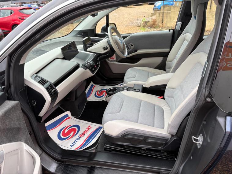 Discover this 2018 BMW i3, a superb example of electric motoring. This model boasts a 33 kWh battery, offering a maximum range of 186 miles when new, making it ideal for both city commutes and longer journeys. Charging is convenient, with a full charge at home using a 7kW charger taking approximately 5 hours and 15 minutes. For quicker top ups, a rapid public charger can replenish the battery from empty to 80% in just 40 minutes. Inside, you'll find the sophisticated Interior World Loft, featuring Electronic Cloth Sensatec Synthetic Leather in Carum Spice Grey, complemented by a Glass Sunroof and an Auxiliary Cabin Heating System for year round comfort. Entertainment is elevated by the Loudspeaker System from Harman Kardon and Online Entertainment.Experience the responsive performance of this BMW i3, with its impressive 0 to 62 mph acceleration achieved in just 7.3 seconds. This quick acceleration demonstrates its advanced electric powertrain, setting it apart from many other vehicles in its class. The combination of its efficient electric drive, generous range, and rapid charging capabilities, alongside its premium interior features and dynamic performance, makes this 2018 BMW i3 a compelling choice for those seeking a modern and capable electric vehicle..