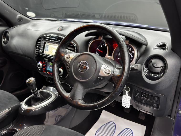 Here at Motor Gurus we are delighted to offer a Nissan Juke 1.5 dCi 8v Acenta. This vehicle is in immaculate condition inside and out. This specific vehicle is finished in a GLOSS BLUE and is contrasted by a GREY CLOTH interior. This vehicle comes included with: REAR PARKING CAMERA, PRIVACY GLASS, PERFORATED GRIPPED LEATHER STEERING WHEEL, CRUISE CONTROL, TWIN CUPHOLDERS, CLIMATE CONTROL, SAT NAVIGATION, DAB RADIO, BLUETOOTH AUDIO, TELEPHONE CONNECTIVITY, TYRE PRESSURE MONOITORING AND MUCH MORE! Our Nissan Juke 1.5 dCi 8v Acenta Premium has come to us with 2 KEYS and is ONLY £20 TAX! We will also provide this vehicle with a 12 MONTH MOT as well as a FRESH OIL SERVICE before it leaves our premises (OTR)..