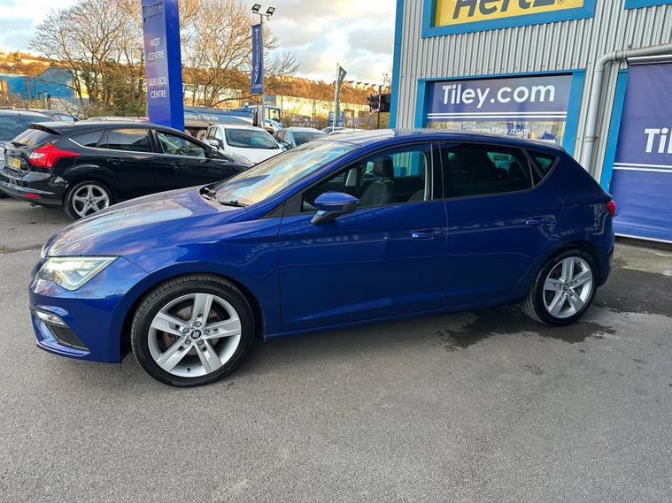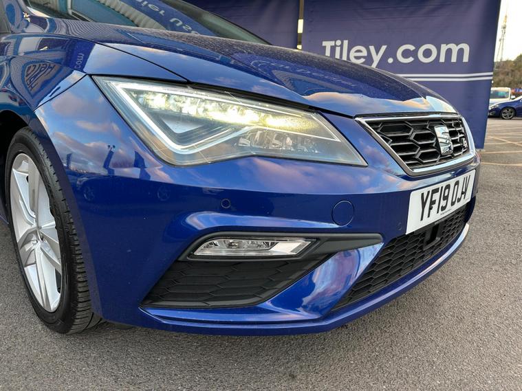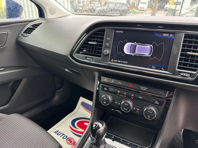 This 2019 SEAT Leon TSI EVO FR boasts exceptionally low mileage for its age, having covered just 36, 000 miles. This particular example is presented in the sporty FR trim, powered by an efficient 1.5 litre Euro 6 compliant petrol engine. It comes equipped with SEAT Full Link Smartphone Integration, offering seamless connectivity through Mirror Link, Apple CarPlay, and Google Android Auto. Parking is made easier with front and rear parking sensors, and you can maintain your ideal cabin temperature with dual zone climate control. The Convenience Pack Plus ensures automatic headlights are included, complemented by full LED headlights for excellent visibility.The Leon TSI EVO FR offers a compelling blend of performance and practicality. Its 0-62mph acceleration in 9.4 seconds demonstrates a responsive drive, while its low CO2 emissions highlight its efficiency. This model also features a large boot space, making it a versatile choice for everyday use and longer journeys. These attributes, combined with its low mileage and desirable features, position this SEAT Leon as an excellent option compared to similar vehicles on the market..