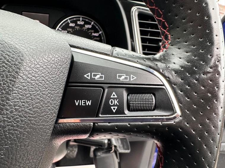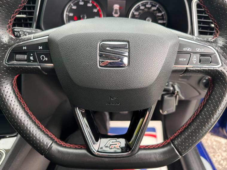 - Steering Wheel - Flat-Bottomed Perforated Leather with Red Stitching and FR Logo