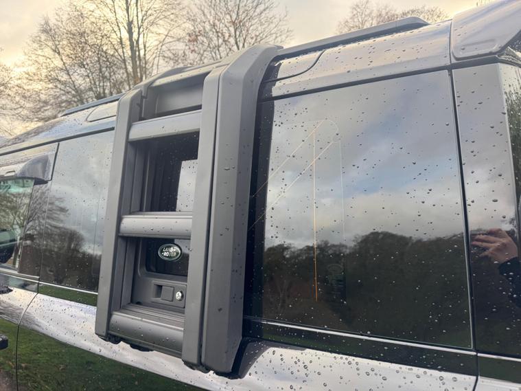 This 2022 Land Rover Defender 90 D250 HSE presents an exceptional opportunity with its remarkably low mileage of just 20, 100 miles for its age, complemented by a clear vehicle history check. This four wheel drive model is powered by a robust 3.0L Diesel engine, meeting Euro 6 emission standards, and boasts an impressive towing weight of 3500 kg. The HSE trim level ensures a premium experience, enhanced by the Air Suspension Pack for superior comfort and capability, a Meridian Surround Sound System for immersive audio, and the practical Signature Graphic with integrated interior storage. Further elevating its appeal are the stylish 20in Alloy Wheels in Satin Dark Grey and the convenience of Wi-Fi enabled connectivity with an included data plan. Snorkel, side box and ladder added extras. Hot and cold heated seats. 2 keys, side box key and ladder key. The Defender 90 D250 HSE offers a compelling blend of performance and refinement, indicated by its swift 0-60mph acceleration in just 7.6 seconds, demonstrating its dynamic capabilities. Its low insurance group rating also highlights its cost effectiveness compared to similar vehicles. This combination of advanced features, strong performance, and excellent provenance makes this Land Rover Defender 90 a standout choice for those seeking a capable and well equipped SUV..