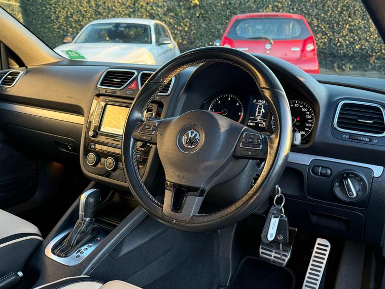 This is a gorgeous example of the 2014 Volkswagen Eos TDI Exclusive Automatic, offers the peace of mind that comes with a full service history, cambelt kit service completed at 47, 703m, we will carry out this years annual service and sell with a 6 month warranty. This stylish convertible has many extra features with a powerful 2.0 litre diesel engine and the desirable Exclusive Leather interior trim. For your convenience, it includes Bi-Xenon headlights, Park Assist with front sensors, and a rear view camera to make parking effortless. Inside, you will find the RNS 510 DVD touch screen satellite navigation system with integrated voice control, ensuring you always reach your destination with ease. The Winter Pack adds further comfort and practicality to this already well equipped vehicle. We sell with 6 Months Warranty Wise Gold Warranty. 2 x keys & all handbooks on this smoker free lovely car. A new 12 months MOT. 12 Months AA Breakdown Membership included. AA Driveaway 5 Day Insurance available - Only £44.99 NEED FINANCE? No Problem - SAF Registered. Simply click 'Apply for finance' on our website dealer's website We are a FCA registered dealership. Prime or subprime finance. Excellent finance rates starting from as low as 12.9% APR (Subject to status and terms and conditions).For any further information and details to view please contact David, who has over 50 years personal Motor Trade experience. Buy with confidence. Delivery to your door is available, please ask for a quoteThis Volkswagen Eos stands out with its low insurance group, making it an economical choice. The inclusion of 12 months MOT on purchase demonstrates its roadworthiness. The combination of advanced parking aids, including front and rear sensors and a rear view camera, alongside the intuitive satellite navigation system, highlights how this Eos offers a superior driving experience compared to other vehicles in its class..