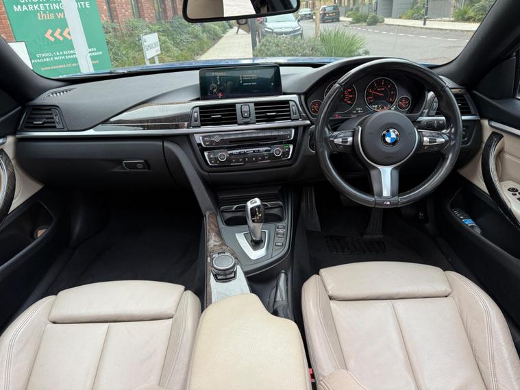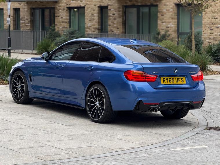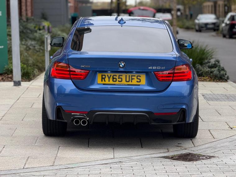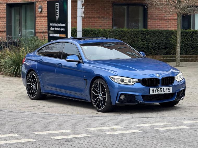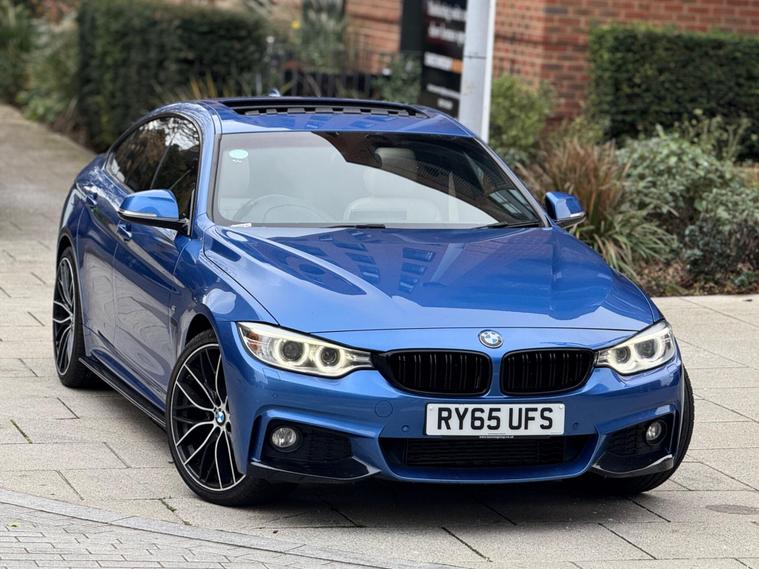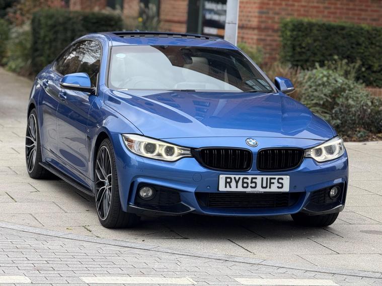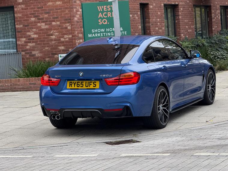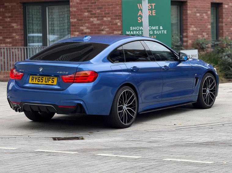 TOP SPEC / ELECTRIC OPENING GLASS SUNROOF / M PERFORMANCE PACK / M SPORT SUSPENSION HPI clear — Full service history — Engine and gearbox warranty available — 1 year AA breakdown cover — Finance available — Nationwide delivery available — Smoke free — Pet free — Long MOT — Inspection report — Immaculate condition This 2015 BMW 4 Series Gran Coupe 420d M Sport presents an exceptional opportunity with its remarkably low mileage of just 72, 000 miles for its age. This Four Wheel Drive model boasts a powerful yet efficient 2.0L Diesel engine, meeting Euro 6 emission standards. The M Sport trim enhances its sporty appeal, complemented by striking 19in M Star Spoke 403M alloy wheels. Inside, you'll find luxurious BMW Individual Fine Wood Sycamore Red Brown Dark interior trim, alongside Ash Grain Wood trim with metal inlay and pearl chrome highlights, creating a sophisticated cabin. A glass sunroof, including an electric sunroof function, adds to the premium feel, while the reversing assist camera with parking assistance makes manoeuvring effortless.The 420d M Sport is designed for both performance and practicality, offering a swift 0-62mph acceleration in just 7.4 seconds, demonstrating its dynamic capabilities. This acceleration figure indicates a more responsive driving experience compared to many similar vehicles. Furthermore, the generous boot space ensures that practicality is not compromised, making it an ideal choice for those who need versatility. The combination of its advanced features, impressive performance, and low mileage makes this BMW 4 Series Gran Coupe a standout option..