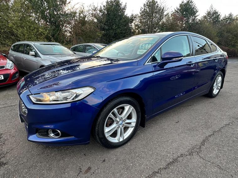 MUST BE VIEWED , FINISHED IN A LOVELY BLUE METALLIC .12 MONTHS MOT AND A SERVICE WILL BE CARRIED OUT FOR THE NEXT OWNER ... This 2015 Ford Mondeo TDCi Titanium presents a superb blend of efficiency and refinement, boasting a robust 2.0L diesel engine that meets the Euro 6 emission standards. As a Titanium trim model, it comes equipped with desirable features such as automatic headlights that illuminate the road ahead without intervention, and dual zone electronic automatic climate control for personalised comfort for both driver and front passenger. Rear passengers are also catered for with independent rear air conditioning. Connectivity is seamless thanks to Bluetooth audio streaming and a handsfree phone system, allowing you to enjoy your music and stay in touch safely.The Mondeo TDCi Titanium offers a compelling driving experience, highlighted by its brisk 0-62mph acceleration in just 9.3 seconds, demonstrating its capable performance. This acceleration figure indicates a more responsive drive compared to many vehicles in its class. Furthermore, the generous boot space provides ample room for luggage, shopping, or equipment, making it a practical choice for families and individuals alike. This combination of performance, practicality, and advanced features makes this Ford Mondeo a standout option..