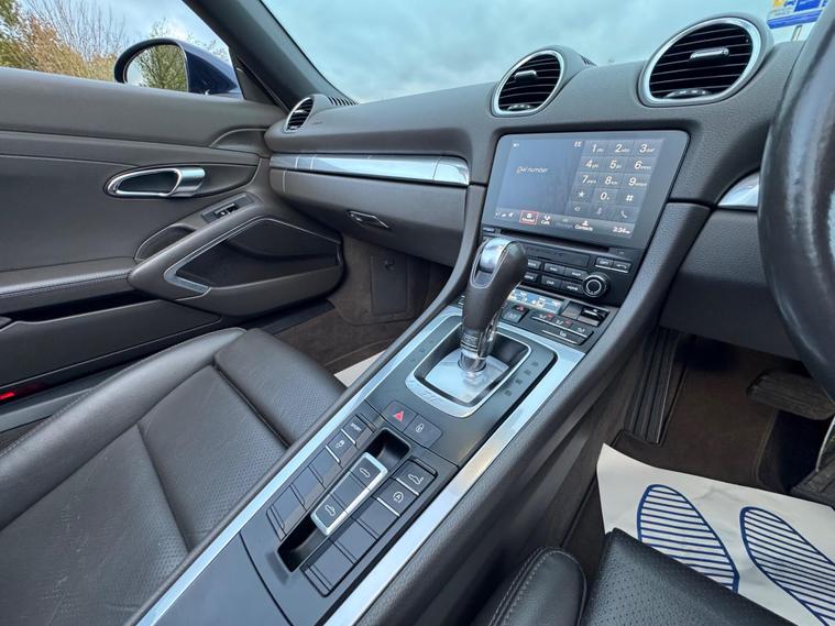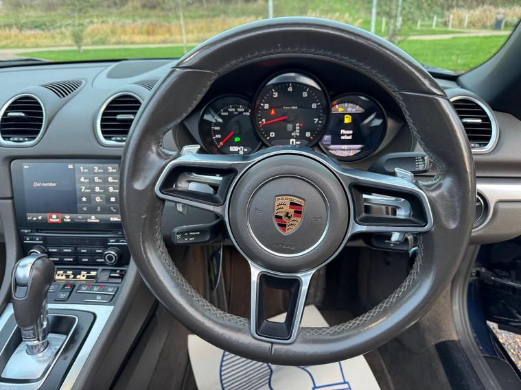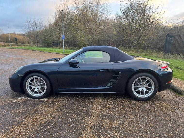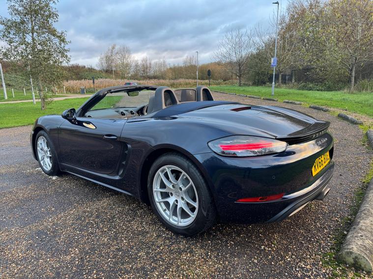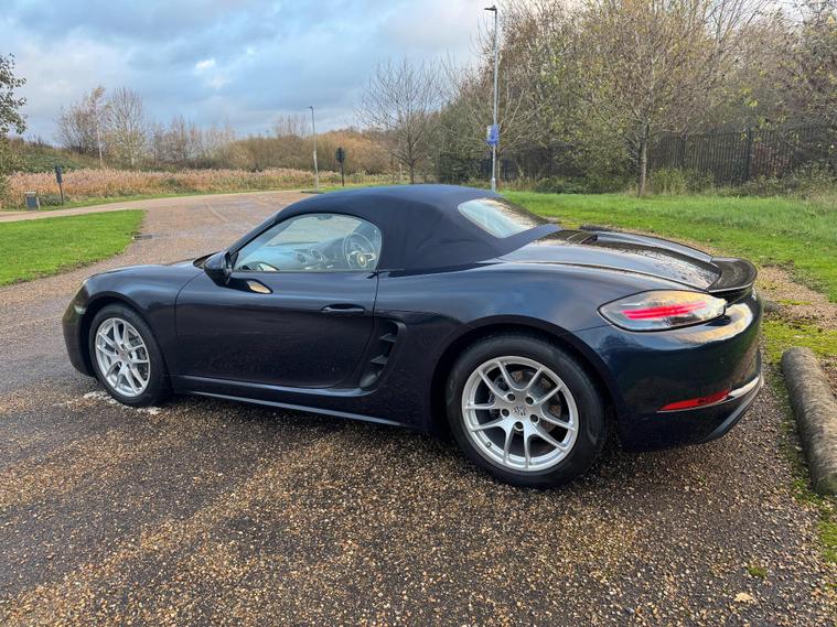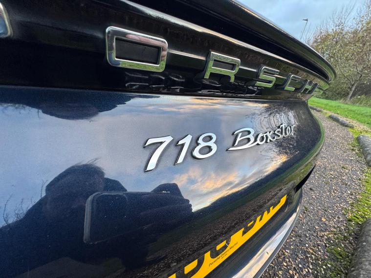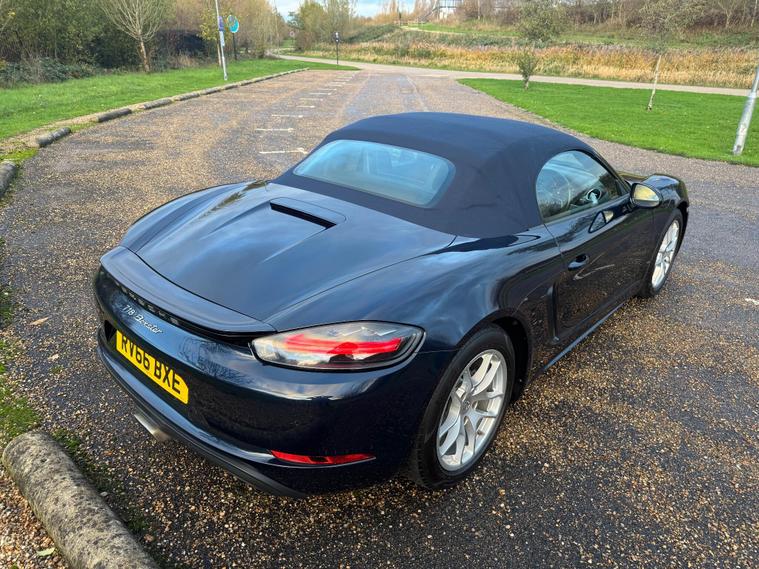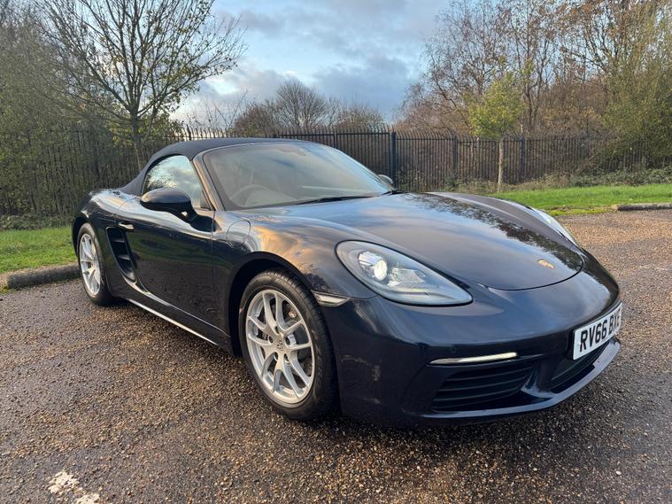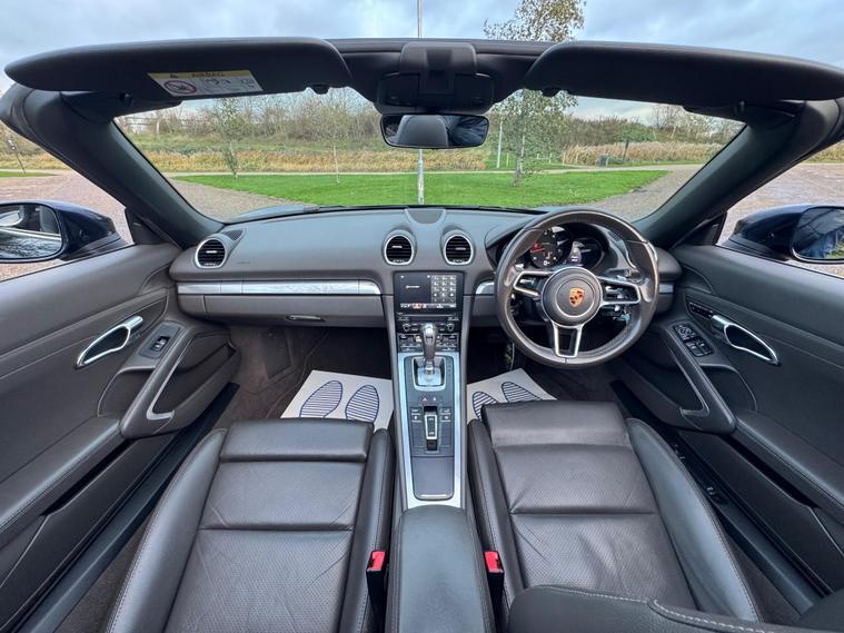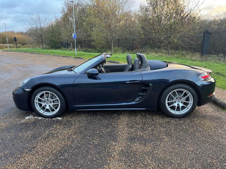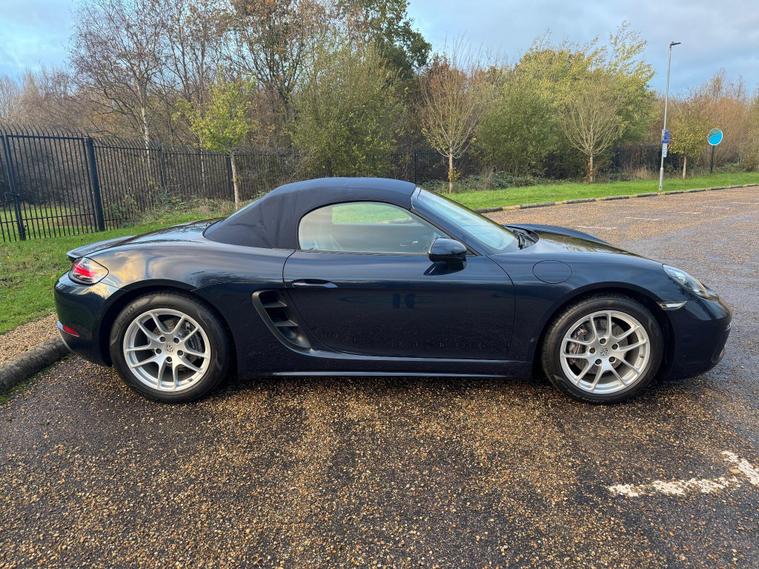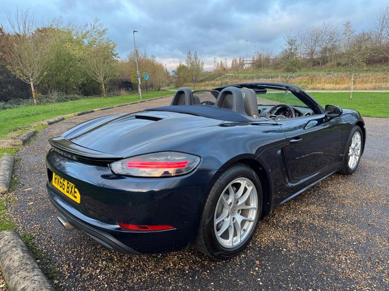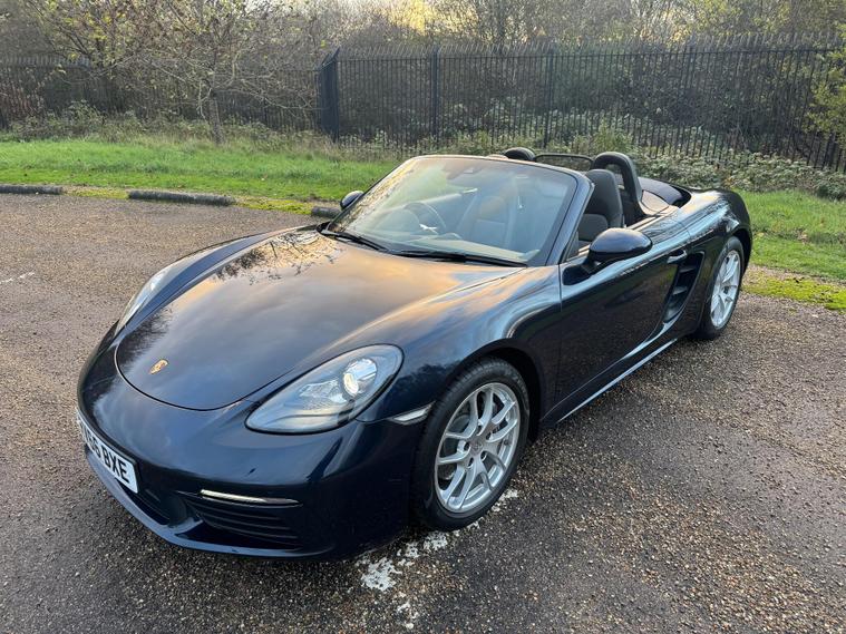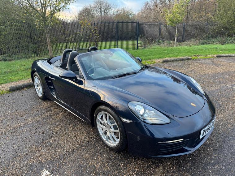 We are pleased to offer this Porsche 718 Boxster that has just arrived with us. Presented in the great combination of Night Blue metallic and Agate Grey Leather, the car comes specified with the pleasing options of 18'' Cayman wheels, Auto dimming mirrors and integrated rain sensor, Cruise control, Digital radio, Electrically folding mirrors with courtesy lighting, Fully electric 14-way sports seats, Leather package, Navigation module for Porsche communication management (PCM), Park assist front and rear, Passenger footwell storage net, PDK gearbox, Heated seats, and Speed limit display. Purchased directly from the last owner who owned the vehicle since 2019. when it had covered a mere 300 miles. Supplied by Porsche Mayfair, its first service was carried out by them at 311 miles in Feb 19. Its next was with renown Porsche specialist R.G.A at 21658 miles in March 21. Since then Porsche Centre West London serviced at 39350 in October 22 and 53338 miles in September 24. All services have been in line with Porsces 2 year or 20k service schedule. Alongside the stamped book there are invoices for all supplementary work including in May this year all brake discs and pads were replaced..