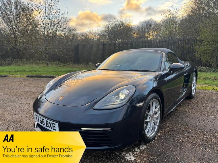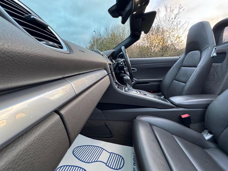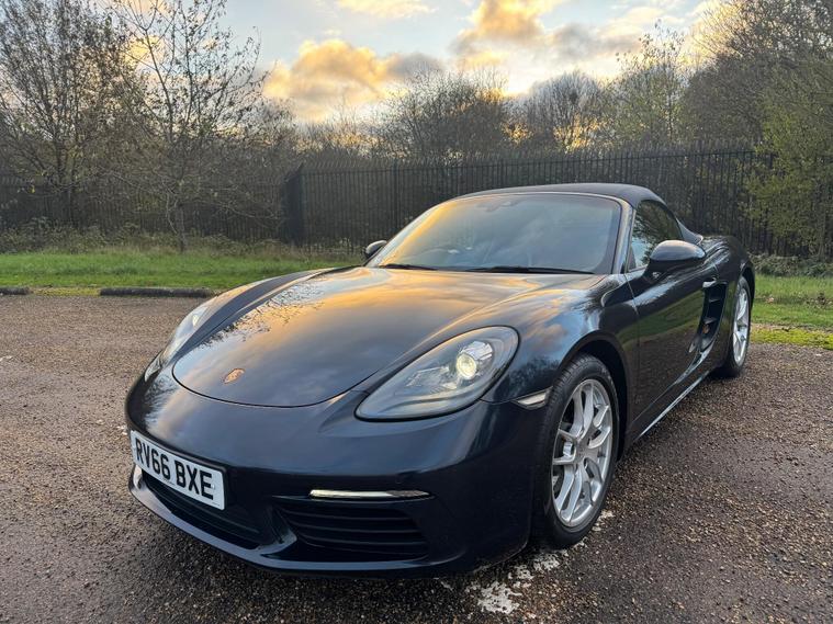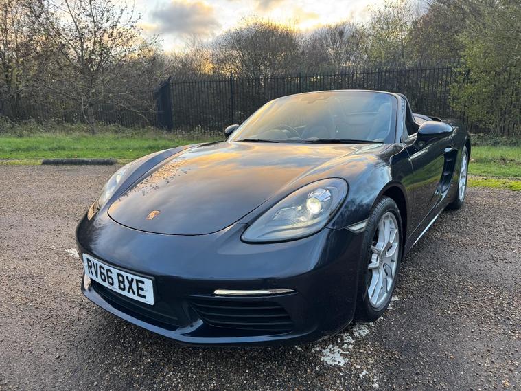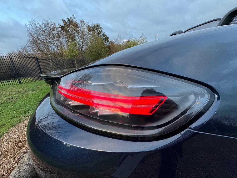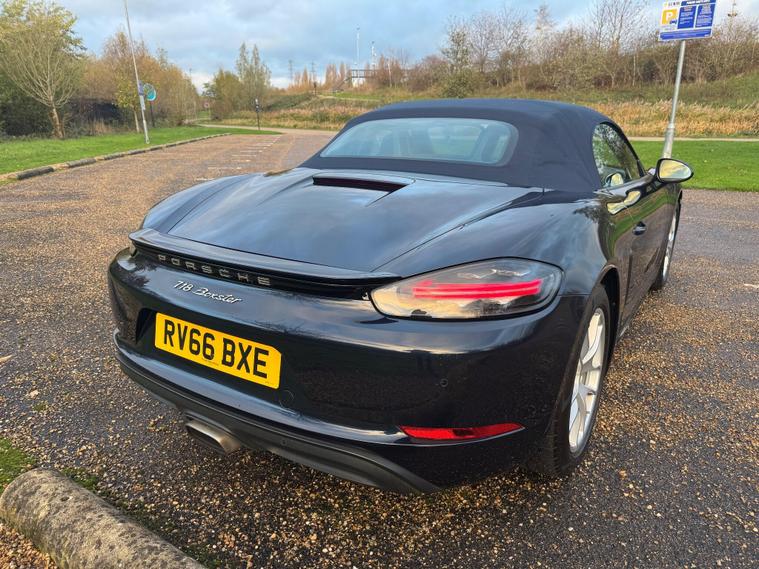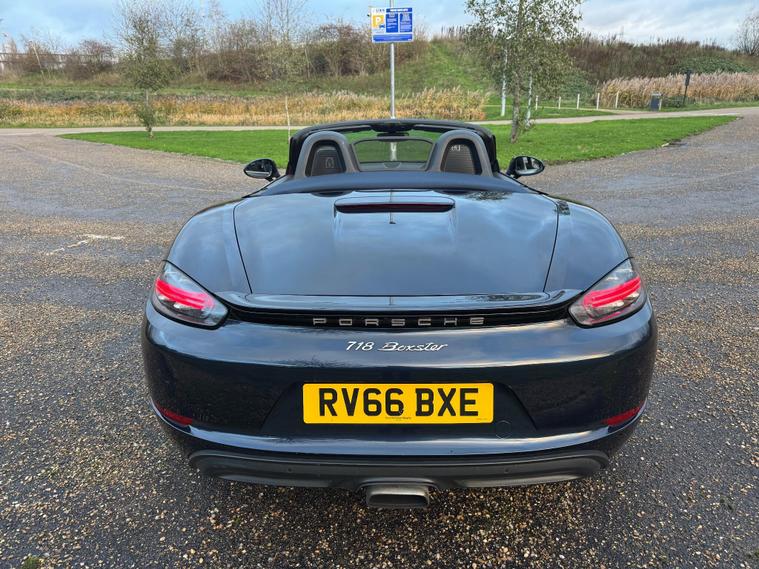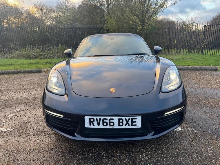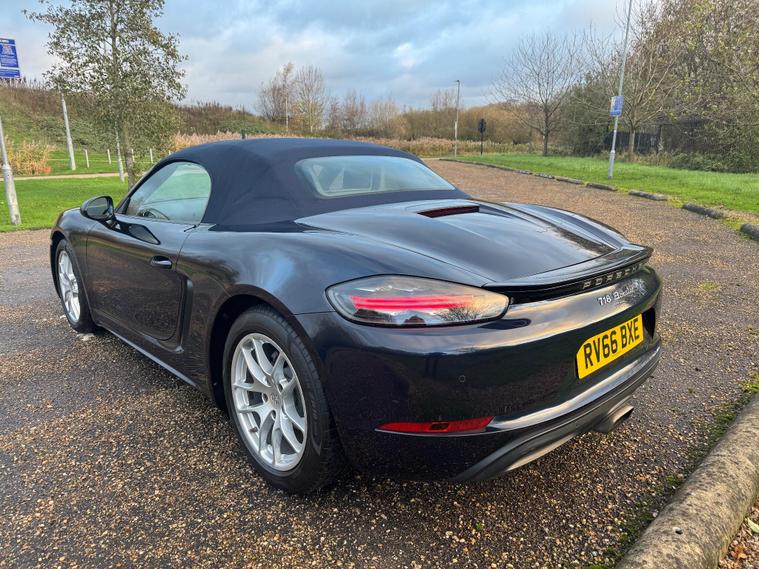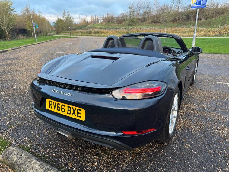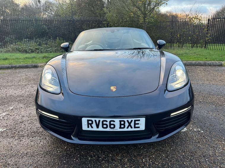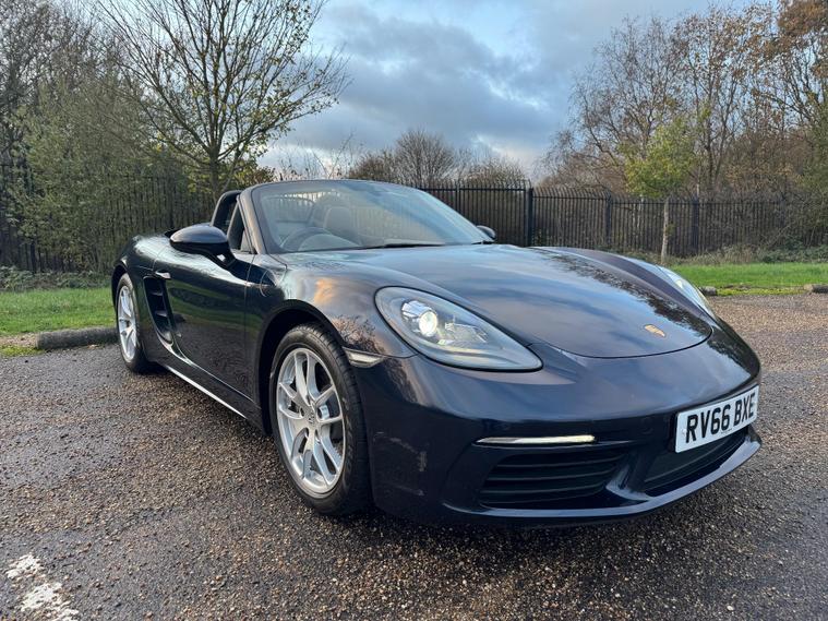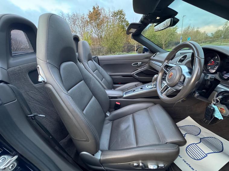 We are pleased to offer this Porsche 718 Boxster that has just arrived with us. Presented in the great combination of Night Blue metallic and Agate Grey Leather, the car comes specified with the pleasing options of 18'' Cayman wheels, Auto dimming mirrors and integrated rain sensor, Cruise control, Digital radio, Electrically folding mirrors with courtesy lighting, Fully electric 14-way sports seats, Leather package, Navigation module for Porsche communication management (PCM), Park assist front and rear, Passenger footwell storage net, PDK gearbox, Heated seats, and Speed limit display. Purchased directly from the last owner who owned the vehicle since 2019. when it had covered a mere 300 miles. Supplied by Porsche Mayfair, its first service was carried out by them at 311 miles in Feb 19. Its next was with renown Porsche specialist R.G.A at 21658 miles in March 21. Since then Porsche Centre West London serviced at 39350 in October 22 and 53338 miles in September 24. All services have been in line with Porsces 2 year or 20k service schedule. Alongside the stamped book there are invoices for all supplementary work including in May this year all brake discs and pads were replaced..