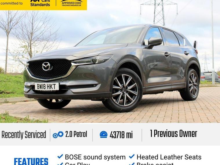 chans cars Cars Are Proud To offer You This Fine 2018 Mazda CX-5 2.0 SKYACTIV-G Sport Nav SUV 5dr Petrol Manual 43718 Miles , MOT--07/11/2026, 1 Previous Owner, Car apple Play, Heated Leather Seats, Full Service history with 5 Service from Mazda , Auto light and Wiper, Cruise Control, Bluetooth, Digital Dual Zone, Climate Control, Front and Rear Parking Sensors and Rear view Camera , Digital Display, L.E.D Daytime Running Lights, Stop /Start Technology, Bose Speakers, DAB Radio, Air Con , Seat Height Adjustment, Immobilizer , Climate Control, Enjoy low interest rates and no admin fees on finance when you deal with us directly and Avoid admin charges! We Strive to deliver the best possible customer experience, but don’t take our words for it, read our 227+ great reviews!.