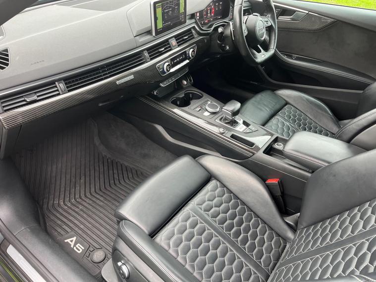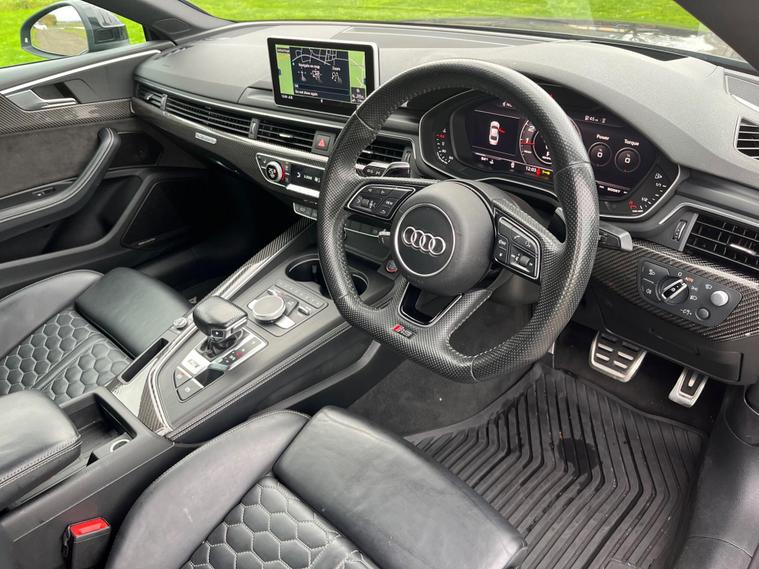 This 2018 Audi RS5 TFSI V6 boasts a full dealership service history, with its last service completed on 29th April 2025 at 41, 707 miles, ensuring excellent provenance. This impressive performance coupe features a powerful 2.9 litre petrol engine paired with a four wheel drive drivetrain, meeting Euro 6 emissions standards. Notable features include advanced ceramic brakes for superior stopping power, RS Suspension Plus with Dynamic Ride Control for an adaptive driving experience, and a helpful Head Up Display. Inside, the cabin is enhanced with carbon inlays and a Carbon Matt Aluminium Styling Pack, adding a touch of sporty sophistication.The RS5 offers a compelling blend of performance and technology. The inclusion of RS Suspension Plus with Dynamic Ride Control signifies a higher level of engineering and adjustability compared to standard suspension systems, providing a more engaging and comfortable drive. The ceramic brakes are a premium upgrade, offering enhanced durability and fade resistance, particularly beneficial for spirited driving. With a 6 month warranty and 12 months MOT provided on purchase, this Audi RS5 represents a well maintained and thoroughly checked vehicle ready for its next owner..
