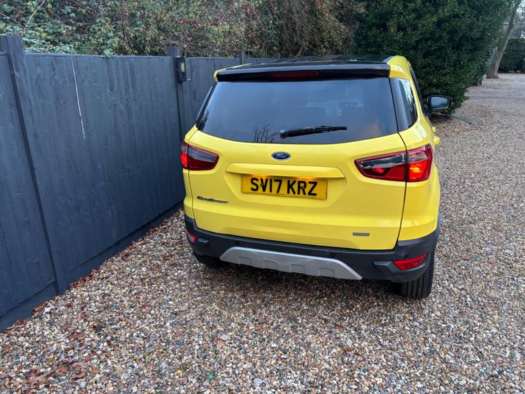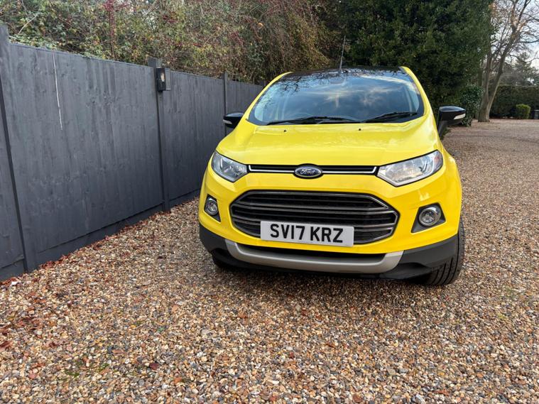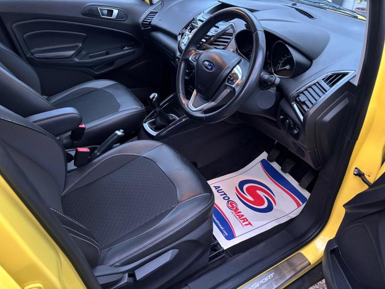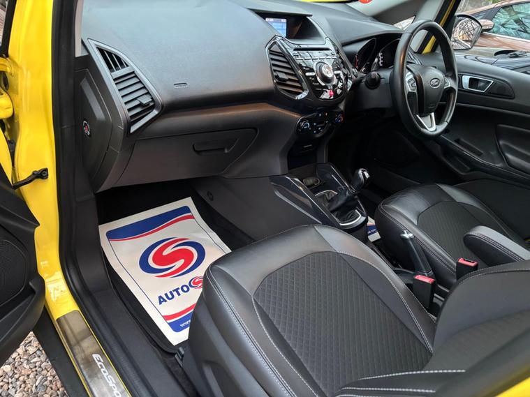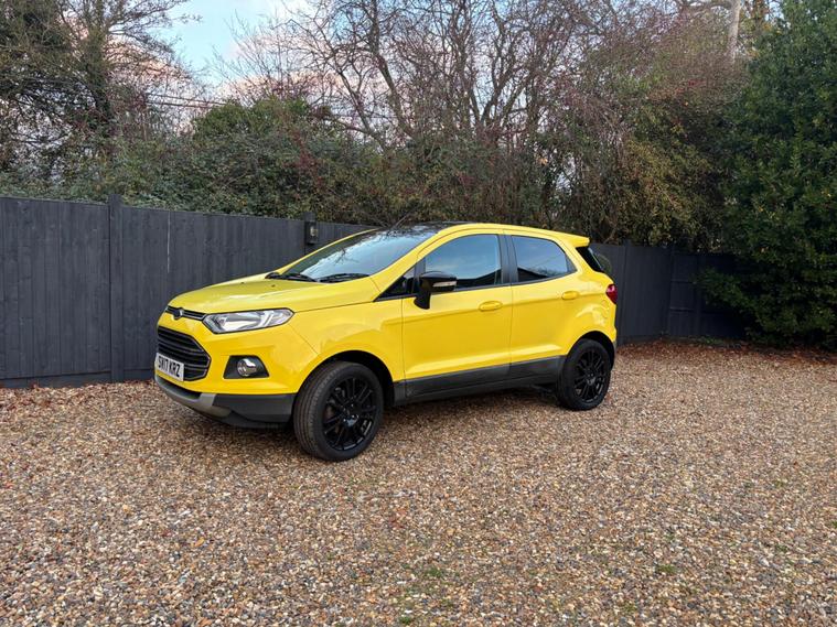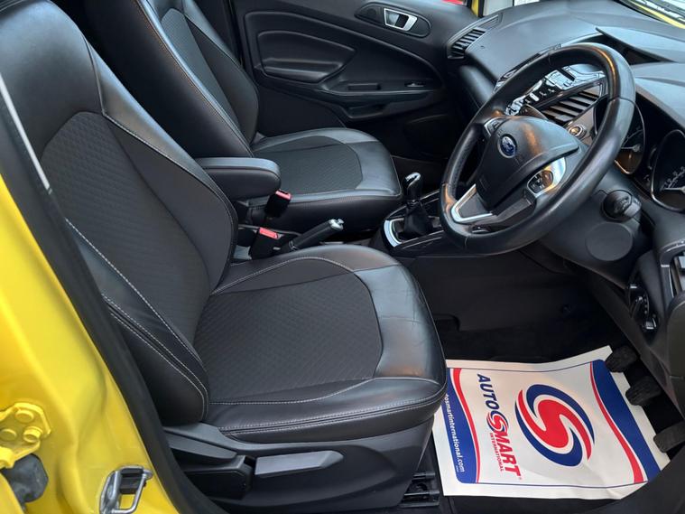 ALL VIEWINGS STRICTLY BY APPOINTMENT ONLY, FINANCE DELIVERY AND PX AVAILABLE, COMES WITH MOT TILL NOVEMBER 2026 WITH NO ADVISORIES, 6 MONTHS WARRANTY AND 12 MONTHS AA COVER, LAST SERVICE AT 26, 000 MILES, REAR PARKING SENSORS, BLUETOOTH, AUX, BUY WITH CONFIDENCE READ OUR CUSTOMERS DEALER REVIEWS, UNDER COVER INDOOR SHOWROOM VIEWING, FULL DEALER FACILITIES, OPEN 7 DAYS, PREVIOUSLY A CAT S.Discover this 2017 Ford EcoSport T Titanium S with exceptionally low mileage for its age, having covered just 30, 000 miles. This Euro 6 compliant 1.0L petrol model offers a superb fuel economy of 52 mpg, making it an economical choice. It comes with a 6 month warranty for your peace of mind, and a fresh 12 month MOT will be provided upon purchase. The last service was completed at 26, 000 miles, further demonstrating its excellent provenance.This Titanium S trim level is well equipped with notable features designed for convenience and comfort. Enjoy effortless parking with rear parking sensors and assistance, while automatic headlights ensure optimal visibility. The KeyFree system allows for keyless entry, and you can maintain your preferred cabin temperature with the Electronic Automatic Temperature Control climate control. Its low CO2 emissions also contribute to its appeal as a responsible and efficient vehicle..