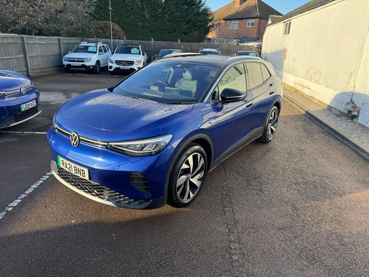 RECENT SERVICE AT VW2 KEYS1 OWNERFINANCE AVAILABLE!This 2021 Volkswagen ID.4 Pro Performance 1ST Edition is a standout electric vehicle, boasting exceptionally low mileage for its age with just 35000 miles and having had only one owner. As an electric model, it offers a substantial battery total capacity of 82 kWh, providing a maximum range of 310 miles when new. This 1ST Edition trim comes equipped with a suite of advanced features, including Smart Adaptive Cruise Control, a Rain Sensor, and Keyless Entry with Keyless Start. You'll also benefit from LED Headlights with automatic switching and LED Tail Lights, a heated multifunction leather steering wheel, and a rear view camera for easier parking.The impressive battery capacity means you can enjoy up to 310 miles of driving on a single charge, a key advantage over many other electric vehicles. Charging is convenient, with a full charge at home taking approximately 12 hours and 40 minutes using a 7kW charger, while rapid public charging can take you from empty to 80% in just 40 minutes. This ID.4 also offers generous boot space, making it practical for everyday use and longer journeys. The combination of its electric powertrain, extensive range, and thoughtful features makes this Volkswagen ID.4 a compelling choice..