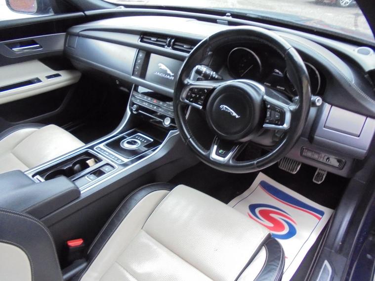 JAGUAR XF 2.0D R-SPORT AUTOMATIC AWD EURO 6.STUNNING EXAMPLE IN METALLIC BLUE WITH CONTRASTING BLACK AND CREAM TWO TONE LEATHER INTERIOR.FANTASTIC SPEC WITH SAT NAV, BLUETOOTH CONNECTIVITY, FRONT AND REAR HEATED SEATS, FRONT AND REAR PARKING SENSORS, AIR CON, CRUISE CONTROL, DAB RADIO AND 18 INCH ALLOY dealer's website WITH MOT UNTIL NOVEMBER 2026 AND FULL SERVICE HISTORY.12 MONTHS FREE AA BREAKDOWN COVER AND 18 MONTHS WARRANTY INCLUDED IN PRICE.FINANCE AVAILABLE P/X WELCOME..