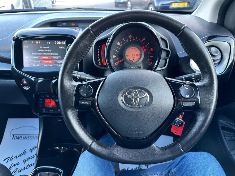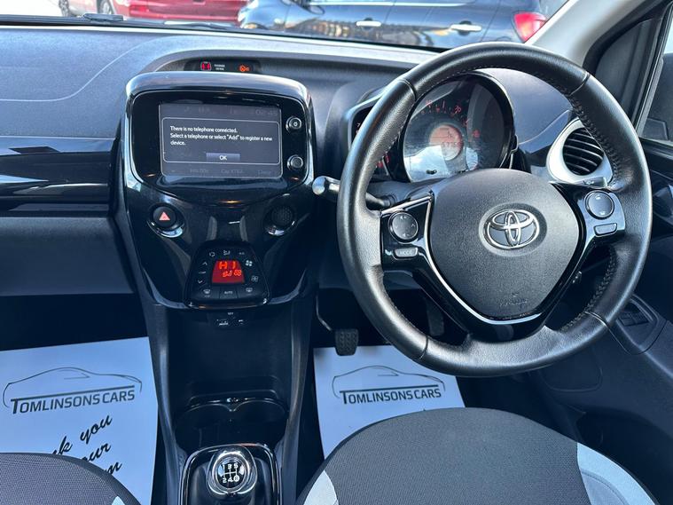 FULL TOYOTA SERVICE HISTORY+NEW BRAKES FITTED+HPI CLEAR+2 KEYS+FINANCE ARRANGED+PX WELCOME+EXCELLENT CONDITION THROUGHOUT+DAB RADIO+REVERSE PARKING CAMERA+CRUISE CONTROL+METALLIC PAINT+CHAEP ROAD TAX AND CHEAP INSURANCE+This 2015 Toyota AYGO VVT-i x-clusiv is a smart choice for those seeking an economical and well equipped city car. Powered by a 1.0L petrol engine, this model offers impressive fuel economy, achieving up to 69 miles per gallon. The x-clusiv trim level ensures a comfortable and convenient driving experience, featuring automatic air conditioning for consistent cabin temperature and a dusk sensor that automatically activates the headlights. For added ease, it includes Bluetooth connectivity for music streaming and hands free calls, along with a rear view camera to assist with parking.The benefits of choosing this AYGO extend beyond its features. Its low insurance group rating means more affordable cover, while its low CO2 emissions contribute to a lower environmental impact. These highlights demonstrate how this particular AYGO stands out from others in its class, offering a cost effective and practical solution for your motoring needs..