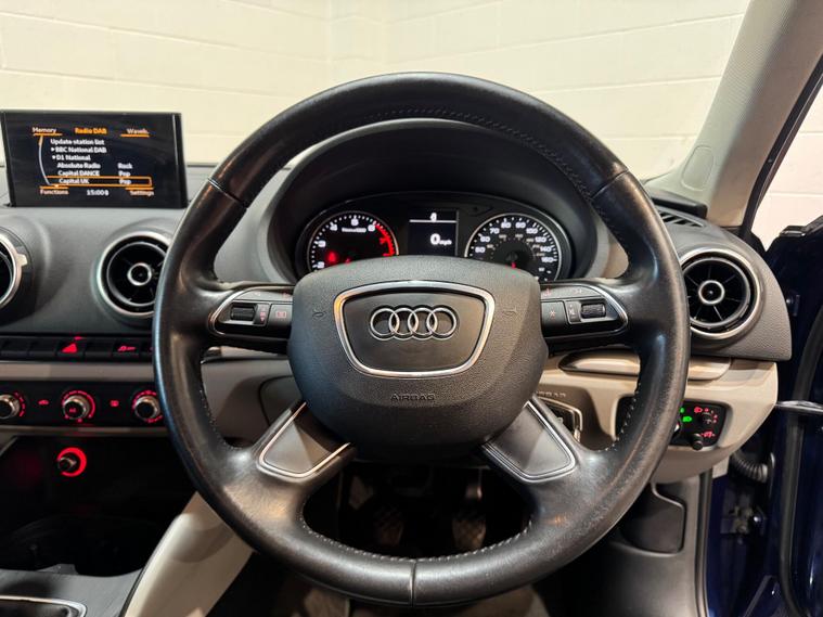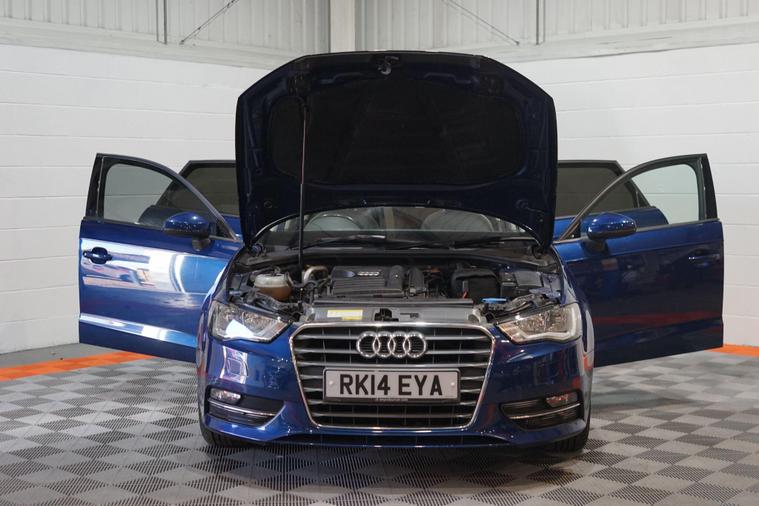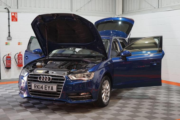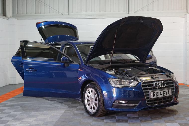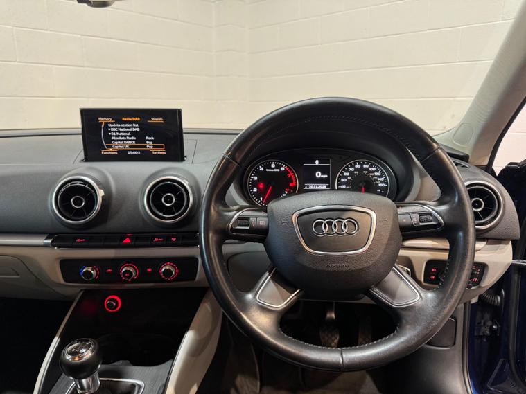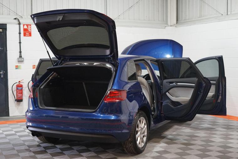 We are pleased to offer this well-equipped Audi A3 1.4 TFSI SE Sportback, finished in the eye-catching Scuba Blue metallic and specified with a range of practical factory options.Powered by the smooth and efficient 1.4 TFSI engine, this A3 delivers a refined drive with excellent fuel economy, making it ideal for both daily commuting and longer motorway journeys. The SE trim provides a comfortable and well-balanced ride, complemented by Audi’s renowned build quality and attention to detail.This example benefits from several useful upgrades, including rear parking sensors for effortless manoeuvring and added peace of mind in tight spaces. Tyre pressure monitoring provides an extra layer of safety, alerting you to changes in tyre condition while on the move. The Micrometallic Silver interior trim adds a stylish, modern touch to the cabin, while the non-smoking pack ensures a clean and fresh interior environment.Inside, you'll find comfortable Titanium Grey Marathon cloth seats and a well-designed cabin featuring Audi’s intuitive layout. DAB radio and Bluetooth connectivity come as part of the specification, giving you easy access to hands-free calls, streaming, and a wide range of radio stations.Finished in a desirable colour, well-optioned, and offering Audi’s signature reliability and comfort, this A3 SE Sportback is a great choice for anyone seeking a practical, efficient, and premium family hatchback..