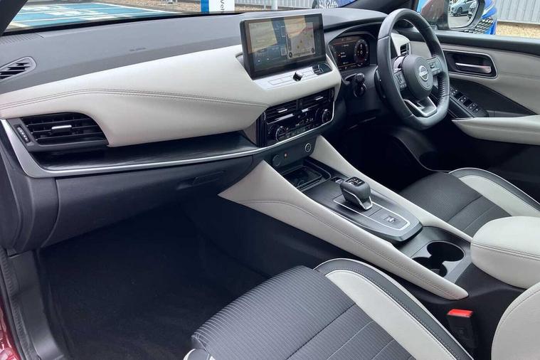 This 2022 Nissan Qashqai DIG-T Tekna is a Nissan manufacturer approved vehicle, offering peace of mind with its proven provenance. It features a 1.3 litre petrol hybrid engine, meeting Euro 6 emission standards. Inside, you'll find a suite of advanced technology designed to enhance your driving experience, including an Intelligent Around View Monitor with a 360 degree camera and parking assistance, front and rear parking sensors, Blind Spot Warning with assistance, and Intelligent Blind Spot Intervention. Connectivity is seamless with wireless Apple CarPlay.The Qashqai DIG-T Tekna also boasts a generous boot space, making it a practical choice for families and everyday life. Its performance is equally impressive, achieving 0 to 62 miles per hour in just 9.2 seconds, demonstrating a responsive acceleration that sets it apart. Furthermore, its position in a low insurance group indicates that running costs are kept to a minimum, offering a compelling combination of features, performance, and economy compared to similar vehicles on the market..