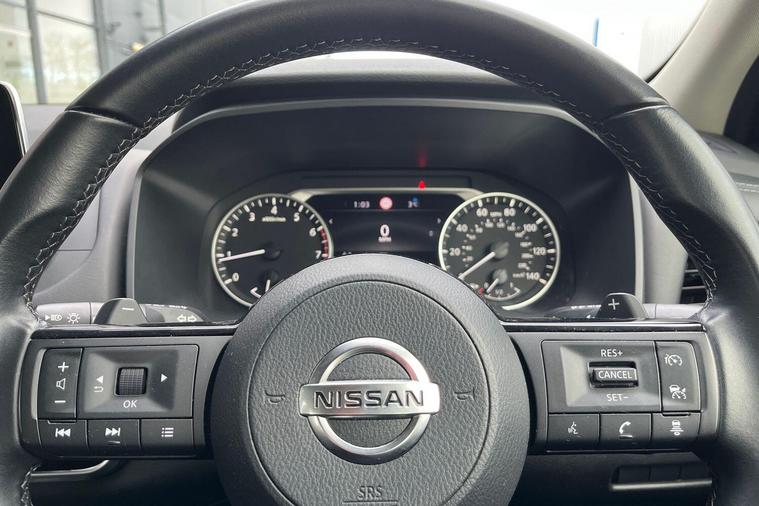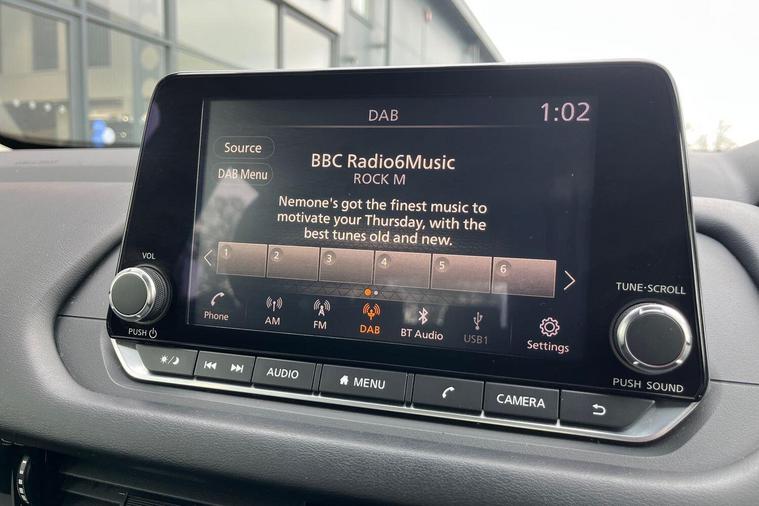This 2021 Nissan Qashqai DIG-T Acenta Premium is a Nissan manufacturer approved vehicle, offering peace of mind with its proven history. This Euro 6 compliant model features a 1.3L Petrol Hybrid engine, combining efficiency with responsive performance. The Acenta Premium trim level ensures a well equipped driving experience, with notable features such as Intelligent Blind Spot Intervention, which includes Blind Spot Assistance, and Rear Parking Sensors for added convenience and safety.The Qashqai DIG-T Acenta Premium stands out with its impressive acceleration, reaching 0-62mph in just 9.2 seconds, demonstrating its dynamic capability. This vehicle also benefits from a low insurance group, making it an economical choice for many drivers. Furthermore, its generous boot space provides ample room for luggage or shopping, indicating its practicality for everyday use and longer journeys compared to other vehicles in its class..