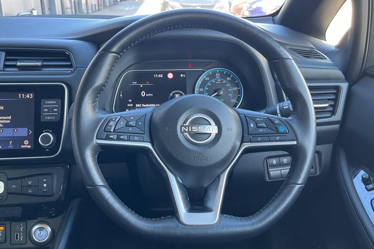 This 2022 Nissan Leaf Tekna presents an exceptional opportunity with its remarkably low mileage of just 13720 miles, a clear indicator of its careful ownership. As a fully electric vehicle, it boasts a 41 kWh battery offering a maximum range of 168 miles when new, making it ideal for both daily commutes and longer journeys. Charging is convenient, with a full charge at home using a 7kW charger taking approximately 7 hours and 30 minutes, while rapid public charging can take the battery from empty to 80% in just 1 hour and 20 minutes. This particular Leaf is Nissan manufacturer approved, providing added peace of mind.The Tekna trim level comes equipped with a suite of intelligent features designed to enhance your driving experience. These include Intelligent Auto Headlights that adjust automatically, Blind Spot Intervention to help you change lanes safely, and Bluetooth with Audio Streaming for seamless connectivity. You'll also appreciate the Automatic Climate Control with Pollen Filter and Timer, ensuring a comfortable cabin environment. Furthermore, the Nissan Leaf offers a generous boot space, providing ample room for your shopping or luggage, setting it apart from many other vehicles in its class..