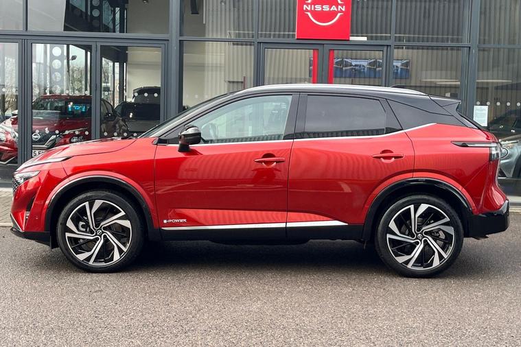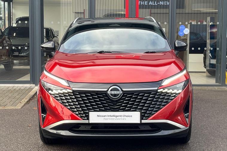 This 2025 Nissan Qashqai h e-POWER Tekna+ boasts an exceptionally low mileage of just 253 miles, making it virtually new. As a Nissan manufacturer approved vehicle, it offers peace of mind alongside its advanced features. This Tekna+ model is equipped with a 1.5L Petrol Hybrid Engine, adhering to Euro 6 emission standards. Notable features include striking LED Headlights with Adaptive Driving Beam, a Heated Steering Wheel for added comfort, and a convenient Wireless Charging Pad for your devices. Safety is enhanced with Blind Spot Warning and Intelligent Blind Spot Intervention systems.Experience impressive efficiency with a highlighted fuel economy of 53 mpg and low CO2 emissions, demonstrating its advanced hybrid technology. The Qashqai also delivers responsive performance, achieving 0-62mph in just 7.9 seconds. These highlights indicate that this Nissan Qashqai offers a superior driving experience compared to other vehicles in its class, combining cutting edge technology with remarkable economy and performance..