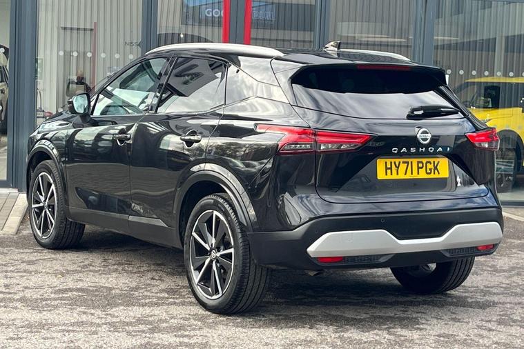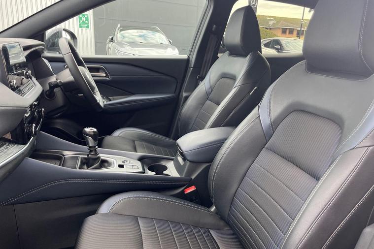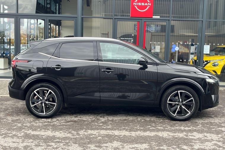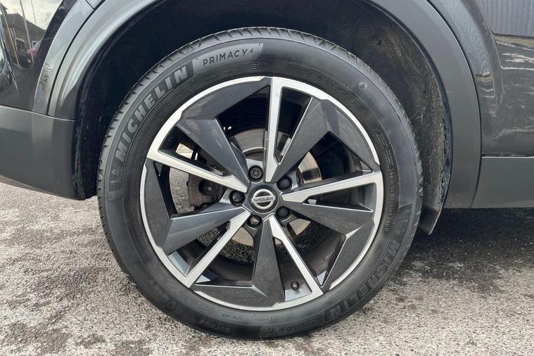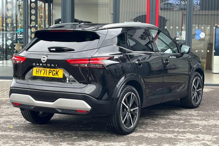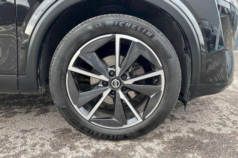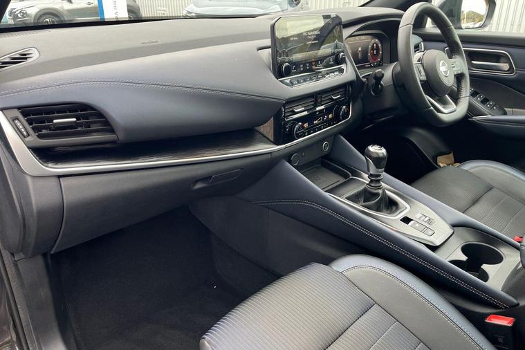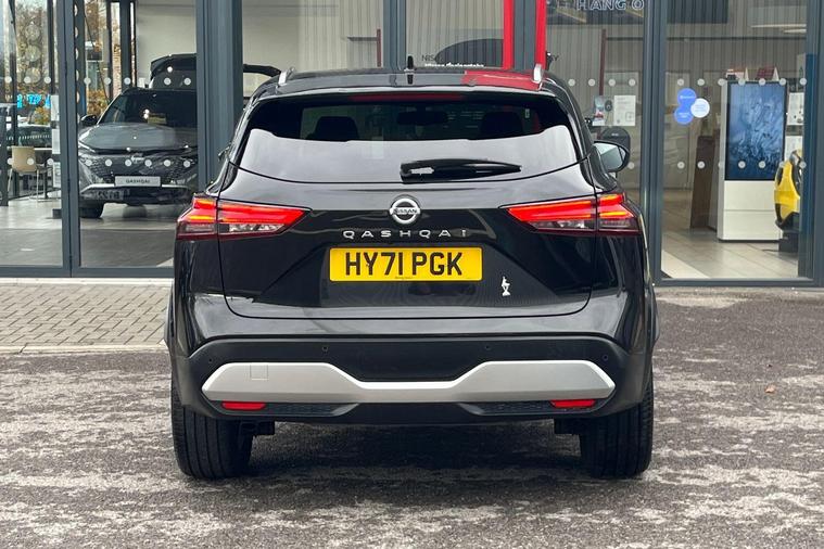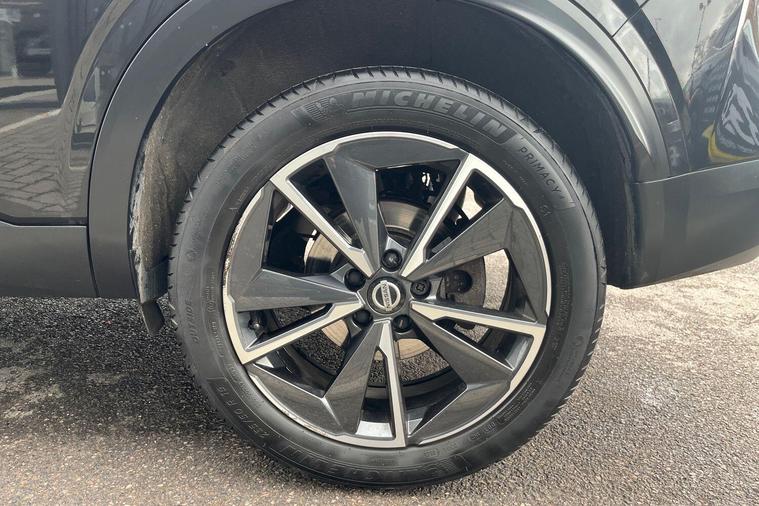 This 2021 Nissan Qashqai DIG-T Tekna is a Nissan manufacturer approved vehicle, offering peace of mind. It features a 1.3L Petrol Hybrid engine and meets Euro 6 emission standards. This Tekna trim model comes equipped with Intelligent Blind Spot Intervention, which includes Blind Spot Assistance, and an Intelligent Around View Monitor with a 360 degree camera and parking assistance. You'll also find Blind Spot Warning, front and rear parking sensors for comprehensive parking assistance, and a dusk sensor that automatically turns on the headlights.The Qashqai DIG-T Tekna stands out with its low insurance group, making it an economical choice. Its large boot space ensures you have plenty of room for luggage or shopping, indicating its practicality compared to similar vehicles. This combination of advanced safety features, efficient hybrid technology, and user friendly design makes this Nissan Qashqai a compelling option..
