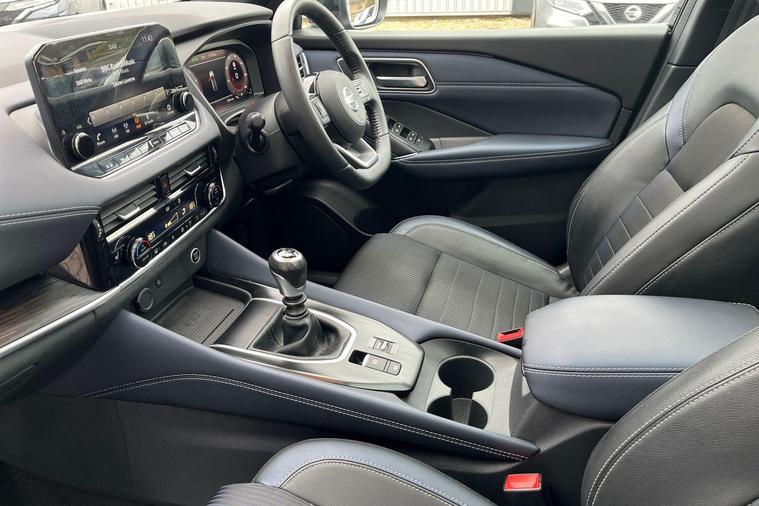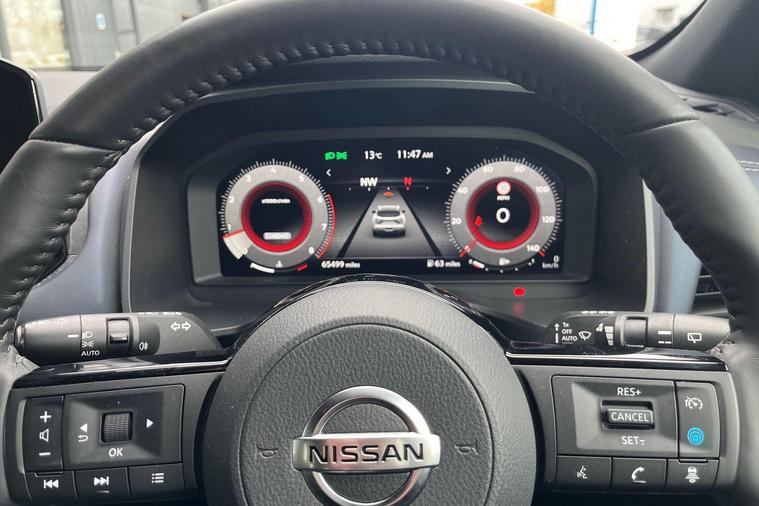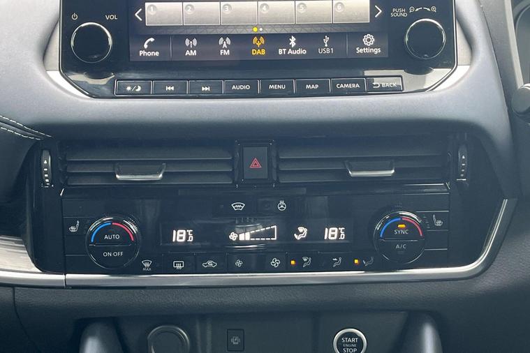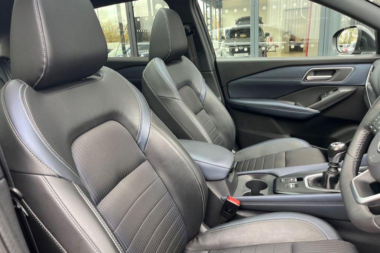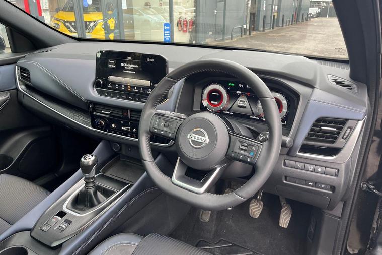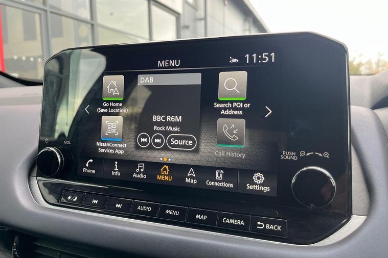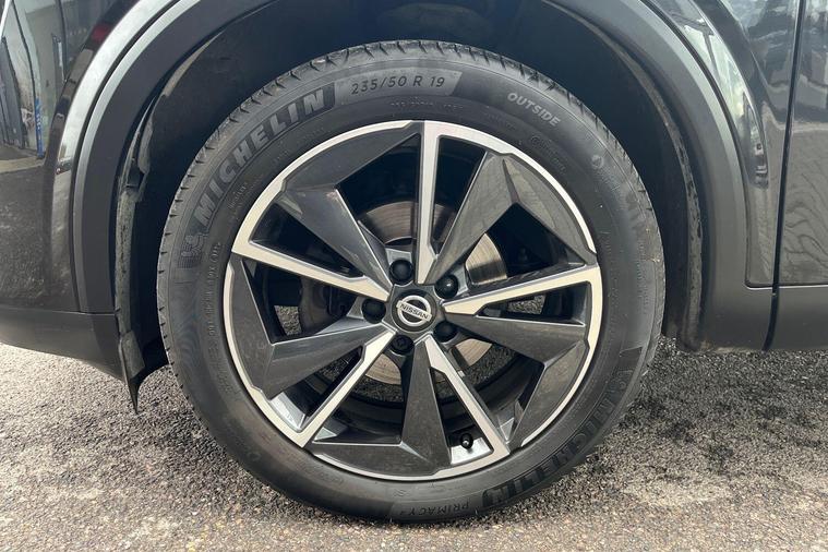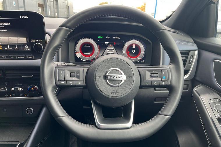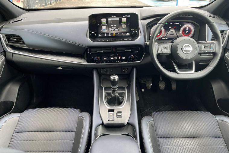 This 2021 Nissan Qashqai DIG-T Tekna is a Nissan manufacturer approved vehicle, offering peace of mind. It features a 1.3L Petrol Hybrid engine and meets Euro 6 emission standards. This Tekna trim model comes equipped with Intelligent Blind Spot Intervention, which includes Blind Spot Assistance, and an Intelligent Around View Monitor with a 360 degree camera and parking assistance. You'll also find Blind Spot Warning, front and rear parking sensors for comprehensive parking assistance, and a dusk sensor that automatically turns on the headlights.The Qashqai DIG-T Tekna stands out with its low insurance group, making it an economical choice. Its large boot space ensures you have plenty of room for luggage or shopping, indicating its practicality compared to similar vehicles. This combination of advanced safety features, efficient hybrid technology, and user friendly design makes this Nissan Qashqai a compelling option..