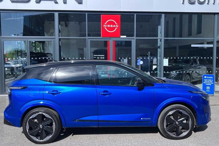 With only 2548 miles on the clock, this 2024 Nissan Qashqai h e-POWER N-Design is practically brand new. This stylish SUV is a Nissan manufacturer-approved vehicle, boasting a 1.5L Petrol Hybrid engine and meeting Euro 6 emission standards. The N-Design trim adds a touch of sophistication, while features like Blind Spot Warning with Blind Spot Assistance, a Wireless Charging Pad, and LED Headlights with Adaptive Driving Beam enhance both safety and convenience.This Qashqai stands out with its impressive fuel economy of 54 mpg, meaning fewer trips to the petrol station and more money in your pocket. The low CO2 emissions also make it a greener choice for the environmentally conscious driver. Acceleration from 0-62mph in just 7.9 seconds demonstrates its responsive performance, while the large boot space ensures you'll have plenty of room for luggage, shopping, or anything else you need to carry..