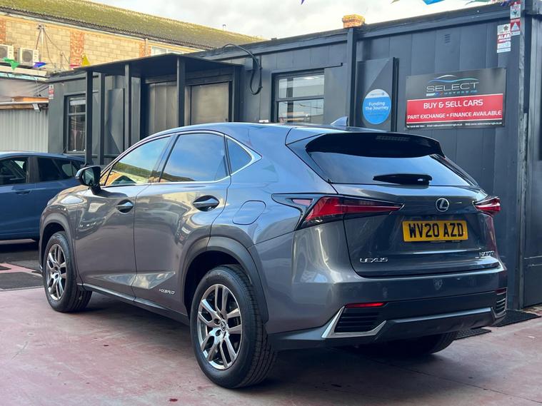SELECT MOTORS (GB) IS DELIGHTED TO OFFER YOU THIS AMAZING LEXUS NX 300H 5DR IN GREY COLOUR AND COMPLEMENTED WITH 18IN DESIGN ALLOY WHEELS. THIS VEHICLE HAS A HUGE SPECIFICATION WHICH INCLUDES THE FOLLOWING; SATELLITE NAVIGATION SYSTEM, CARPLAY FOR IPHONE AND ANDROID AUTOS, REVERSING CAMERA INCLUDING SENSORS, BLUETOOTH CONNECTIVITY FOR PHONE AND MEDIA, DAB-FM/AM RADIO, ELECTRICALLY ADJUSTABLE FRONT HEATED SEATS, PANORAMIC GLASS ROOF WITH ELECTRIC SUNSHADE, LANE DEPARTURE WARNING SYSTEM, CRUISE CONTROL WITH SPEED LIMITER, ELECTRIC POWERED TAILGATE, HEATED STEERING WHEEL, KEYLESS START ENGINE ON WITH START AND STOP PUSH BUTTON, DUAL ZONE CLIMATE CONTROL AIR CONDITIONING, ELECTRONIC PARKING BRAKE, WIRELESS CHARGING FOR SMART PHONES IN ARM REST, TYRE PRESSURE WARNING SYSTEM. THIS VEHICLE IS ULEZ EXEMPT. WE ARE OFFERING NATIONWIDE DELIVERY ON ALL VEHICLE (PLEASE GET IN TOUCH DIRECTLY FOR DETAILS). WE CAN ALSO CONDUCT VIRTUAL VIEWINGS AND ACCOMMODATE ANY REQUESTS YOU MAY HAVE. ALL OUR ADVERTISED STOCK IS TEST-DRIVEN, INSPECTED BY OUR MECHANIC TO MAKE SURE OUR CUSTOMERS DRIVE AWAY WITH THE BEST QUALITY CARS. WE CAN PROVIDE A VIDEO WALK AROUND THIS VEHICLE UPON REQUEST., ALL OF OUR VEHICLES ARE SUPPLIED WITH A 3 MONTHS WARRANTY WITH EXTENDED OPTION. 12 MONTHS FREE AA BREAKDOWN COVER. FINANCE AVAILABLE..