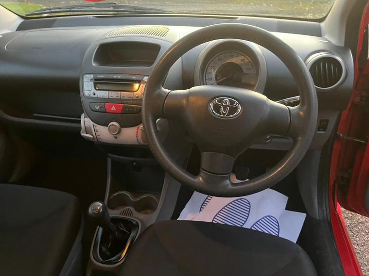 TOYOTA AYGO 1.0 VVT-I IN REC EXTERIOR COLOUR WITH BLACK CLOTH INTERIOR... COMES WITH A LONG MOT... SERVICE HISTORY... £20 ANNUAL ROAD TAX... GREAT FOR A FIRST TIME DRIVER... FEATURING FM CD RADIO WITH AN AUX PORT... DASHBOARD STORAGE COMPARTMENT... CLIMATE CONTROL WITH REAR HEATED WINDOW... HEADLIGHT ADJUSTMENT CONTROLS... REAR FOG LIGHTS... MANUAL OPENING WINDOWS... CUP HOLDERS... MANUAL ADJUSTABLE SIDE MIRRORS... DECENT TREAD ALL ROUND... WARRANTY INCLUDED... ALL PART EXCHANGES ARE WELCOME... OPTIONAL NATIONWIDE DELIVERY EXTRA... BOOK-INS AND VIDEO VIEWINGS ARE AVAILABLE... TEST DRIVES ARE WELCOME... FOR MORE INFORMATION CALL US TODAY ON 01616232309..