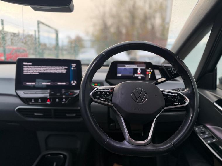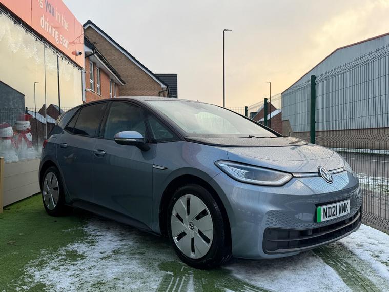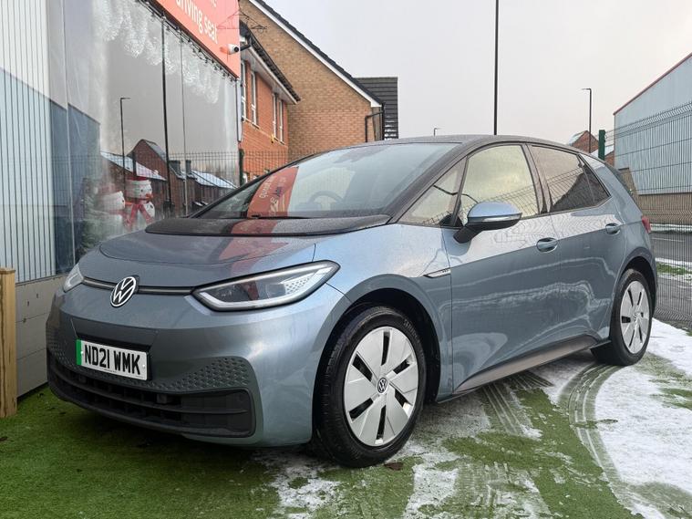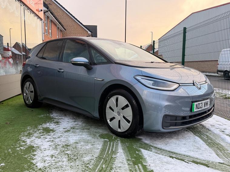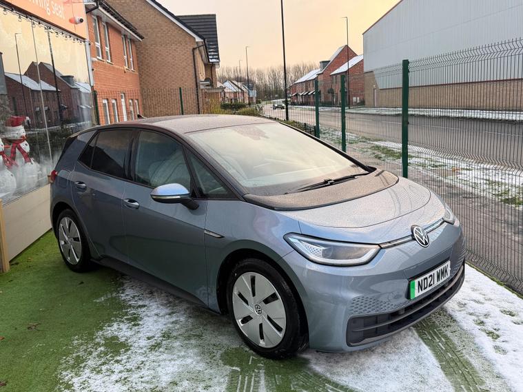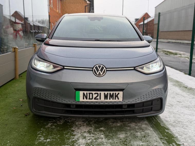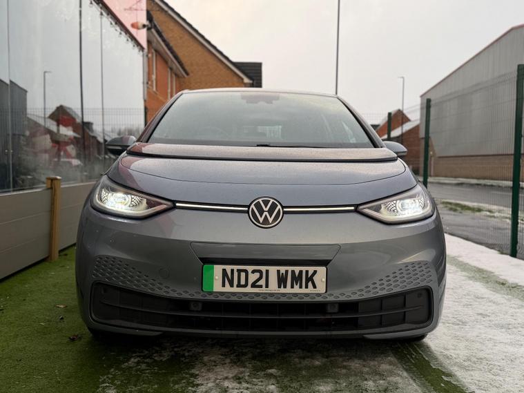 This 2021 Volkswagen ID.3 Pro Performance Business is a fantastic example of electric motoring, boasting a full service history and having had only one owner from new. As an electric vehicle, it offers a smooth and quiet driving experience, powered by a 62 kWh battery that provided an impressive maximum range of 262 miles when new. This particular trim level, the Business, comes equipped with a range of desirable features, including carpet mats for both front and rear, Adaptive Cruise Control with Front Assist and City Emergency Braking, and a 1 Zone Climatronic system for effortless climate control. The Comfort Package adds heated seats and a heated steering wheel, perfect for colder days, while the Design Package enhances the exterior with LED headlights.The ID.3 Pro Performance Business stands out with its excellent performance and practicality. Its acceleration is notably brisk, achieving 0-62mph in just 7.3 seconds, demonstrating its responsive electric power. Charging is convenient, with a full charge at home taking approximately 9 hours and 30 minutes using a 7kW charger, and a rapid charge to 80% possible in as little as 37 minutes at a public charging station. Furthermore, this model offers generous boot space, making it a practical choice for everyday use and longer journeys. This combination of range, performance, and thoughtful features makes this Volkswagen ID.3 a compelling option in the electric vehicle market.Part exchange welcome and finance can be arranged. Viewing by appointment only.