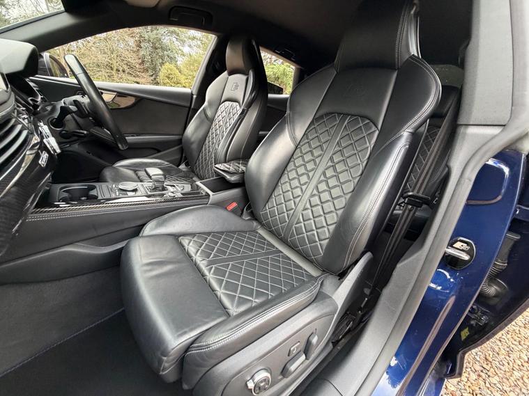 This 2018 Audi S5 TFSI V6 offers a compelling blend of performance and practicality, featuring a potent 3.0 litre petrol engine paired with a sophisticated four wheel drive system for assured handling in all conditions. As a Euro 6 compliant vehicle, it meets stringent emission standards. Inside, you'll find a comfortable and convenient cabin equipped with heated front seats, a parking system plus with front and rear sensors to aid manoeuvring, and keyless go for effortless entry and starting. The light and rain sensor automatically adjusts headlights and wipers, while the Bluetooth interface allows for seamless connectivity.The Audi S5 TFSI V6 truly excels with its impressive acceleration, achieving 0-60mph in a swift 4.5 seconds, demonstrating its dynamic capabilities. This performance, combined with its generous boot space, makes it a versatile choice that stands out from other vehicles in its class. The thoughtful inclusion of features like heated seats and advanced parking assistance further enhances the driving experience, offering both comfort and confidence for everyday journeys and longer trips alike..