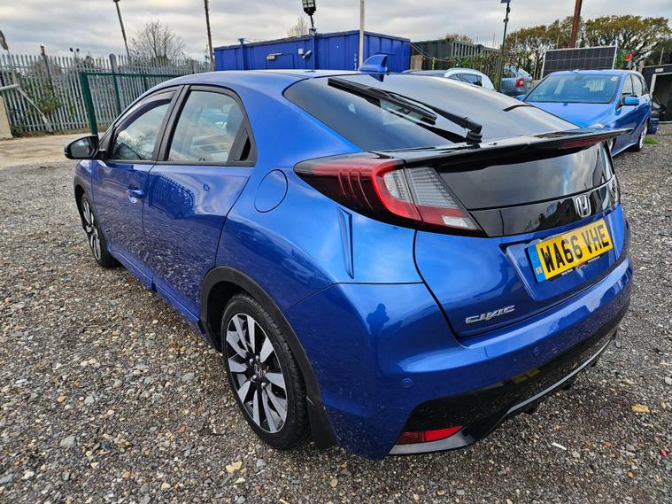 3months warranty, full service history, mot till November 2026, hpi clear, ulez compliant, cruise control system, Bluetooth, reverse camera, parking sensors, 4 previous owners, 12months free aa breakdown cover, 20miles free delivery and nationwide delivery available for extra cost. In house finance options available. .This 2016 Honda Civic i VTEC SE Plus Navi presents a compelling blend of efficiency and practicality, boasting a Euro 6 compliant 1.8 litre petrol engine. As an SE Plus trim, it comes equipped with desirable features such as front and rear parking sensors to aid manoeuvring, and Bluetooth hands free telephone for convenient connectivity on the go. The dual zone climate control ensures comfort for all occupants, while the dusk sensing headlights automatically illuminate, adding to the ease of driving.This Civic stands out with its impressive acceleration, reaching 0 to 62 miles per hour in just 9.1 seconds, demonstrating its responsive performance. Furthermore, its large boot space offers excellent versatility for luggage or shopping, making it a practical choice for everyday use. The vehicle also benefits from a low insurance group, indicating that running costs are likely to be more affordable compared to similar vehicles..