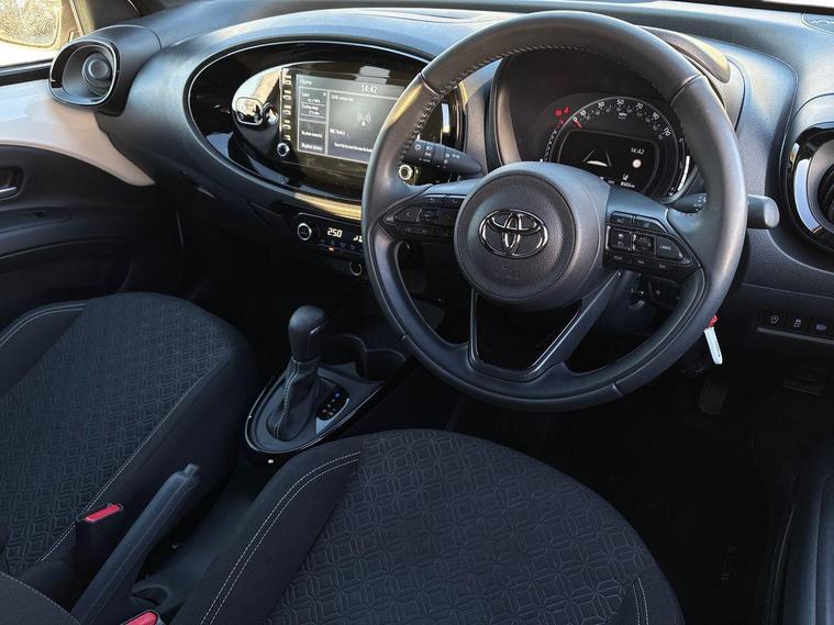 This 2023 Toyota Aygo X VVT-i Edge is a superb example, having had only one owner from new and boasting an incredibly low mileage of just 8503 miles. This Euro 6 compliant 1.0 litre petrol model comes with the remainder of its manufacturer warranty, extending for 15 months, and its MOT is valid until December 2026, offering excellent peace of mind. As a Toyota manufacturer approved vehicle, you can be assured of its quality. Inside, you'll find convenient features such as Bluetooth connectivity, smartphone integration with Apple CarPlay and Android Auto, and auto headlights. The steering wheel houses controls for Intelligent Adaptive Cruise Control, part of the comprehensive Toyota Safety Sense suite.The Aygo X Edge stands out with its impressive fuel economy, achieving a remarkable 57 miles per gallon, which indicates it is more economical than many similar vehicles. Furthermore, its low insurance group and low CO2 emissions highlight its cost effectiveness and environmental consideration compared to other cars in its class. This combination of low running costs, advanced safety features, and single owner provenance makes this Aygo X a truly attractive proposition..