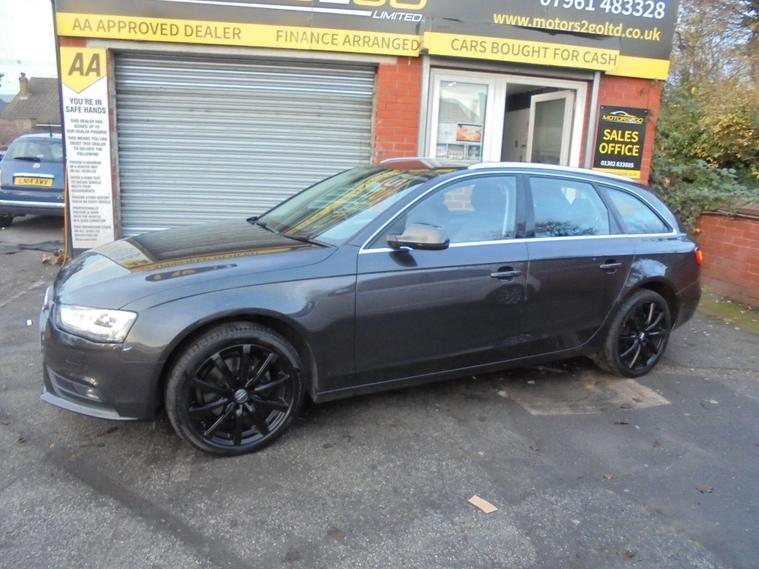 AUDI A4 AVANT 2.0TDI SE TECHNIK MULTITRONIC ESTATE.EURO 5.TAKEN IN P/X BUT TOO GOOD TO TRADE COMES IN METALLIC GREY WITH CONTRASTING FULL BLACK LEATHER INTERIOR.GREAT SERVICE HISTORY WITH CAM BELT AND WATER PUMP CHANGED.FANTASTIC VALUE PRESTIGE AUTOMATIC ESTATE CAR WITH GREAT dealer's website WITH SAT NAV, BLUETOOTH CONNECTIVITY, HEATED SEATS, CRUISE CONTROL, AIR CON, FRONT AND REAR PARKING SENSORS, AND 18 INCH dealer's website WITH MOT UNTIL NOVEMBER 2026 AND FULL SERVICE HISTORY.12 MONTHS FREE AA BREAKDOWN COVER AND 6 MONTH WARRANTY INCLUDED IN PRICE..